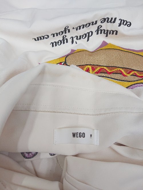◇ Θ WEGO ウィゴー 刺繍 イラスト 長袖 シャツ サイズM アイボリー メンズ P