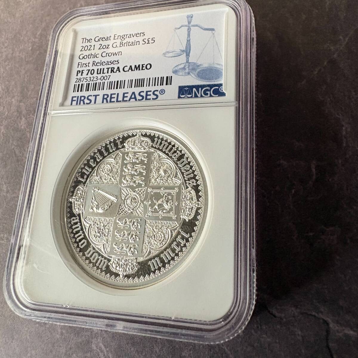 【最高鑑定FRで希少】2021年 イギリス ゴシッククラウン シールドデザイン - 銀貨  PF70 First Releases 2オンス