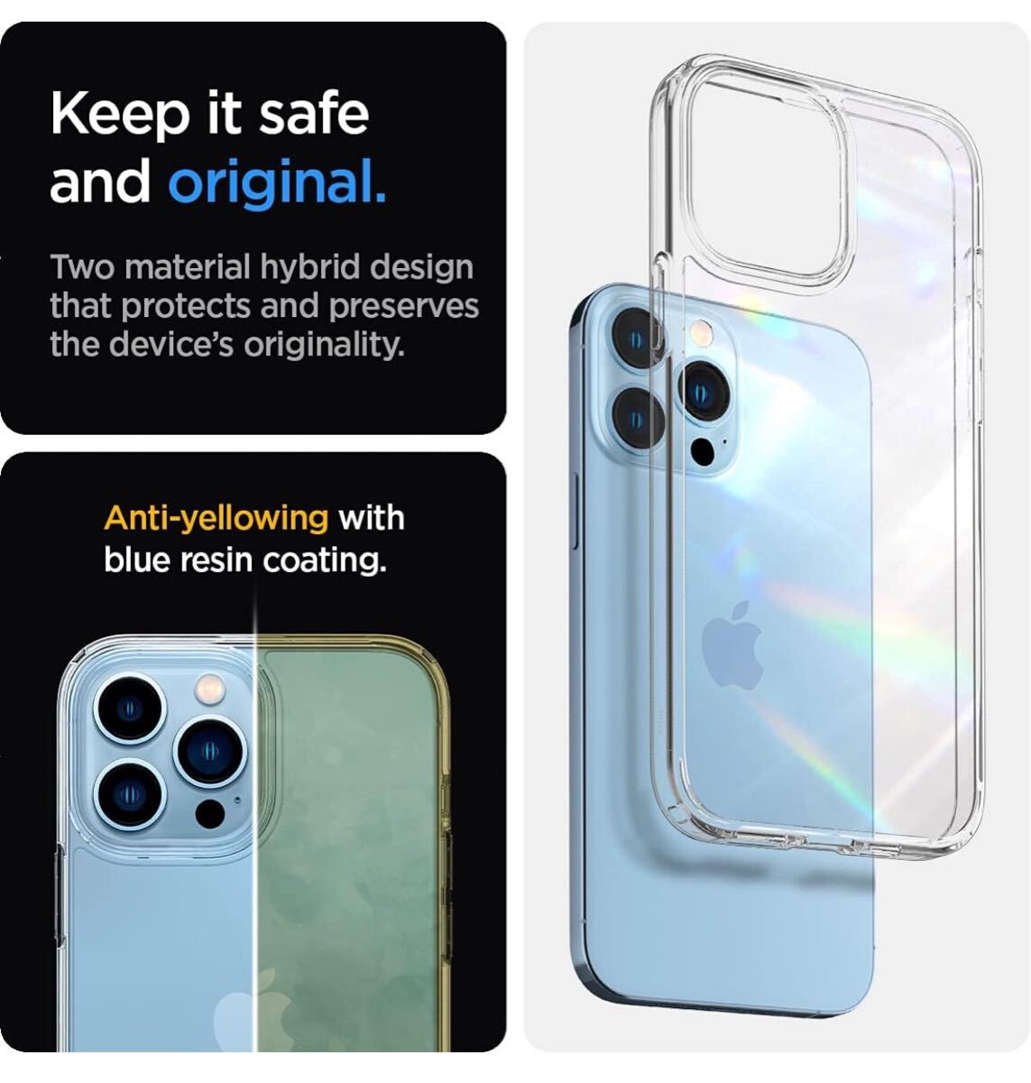 Spigen iPhone13 Pro 用 ケース 全透明 米軍MIL規格取得 ワイヤレス充電対応 ウルトラ・ハイブリッド ACS03261 (クリスタル・クリア)A361