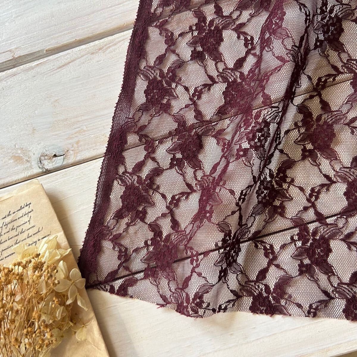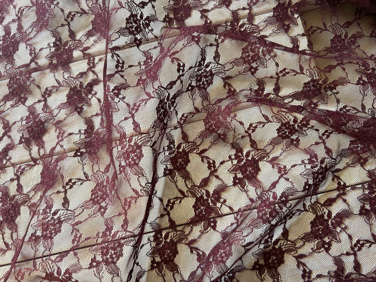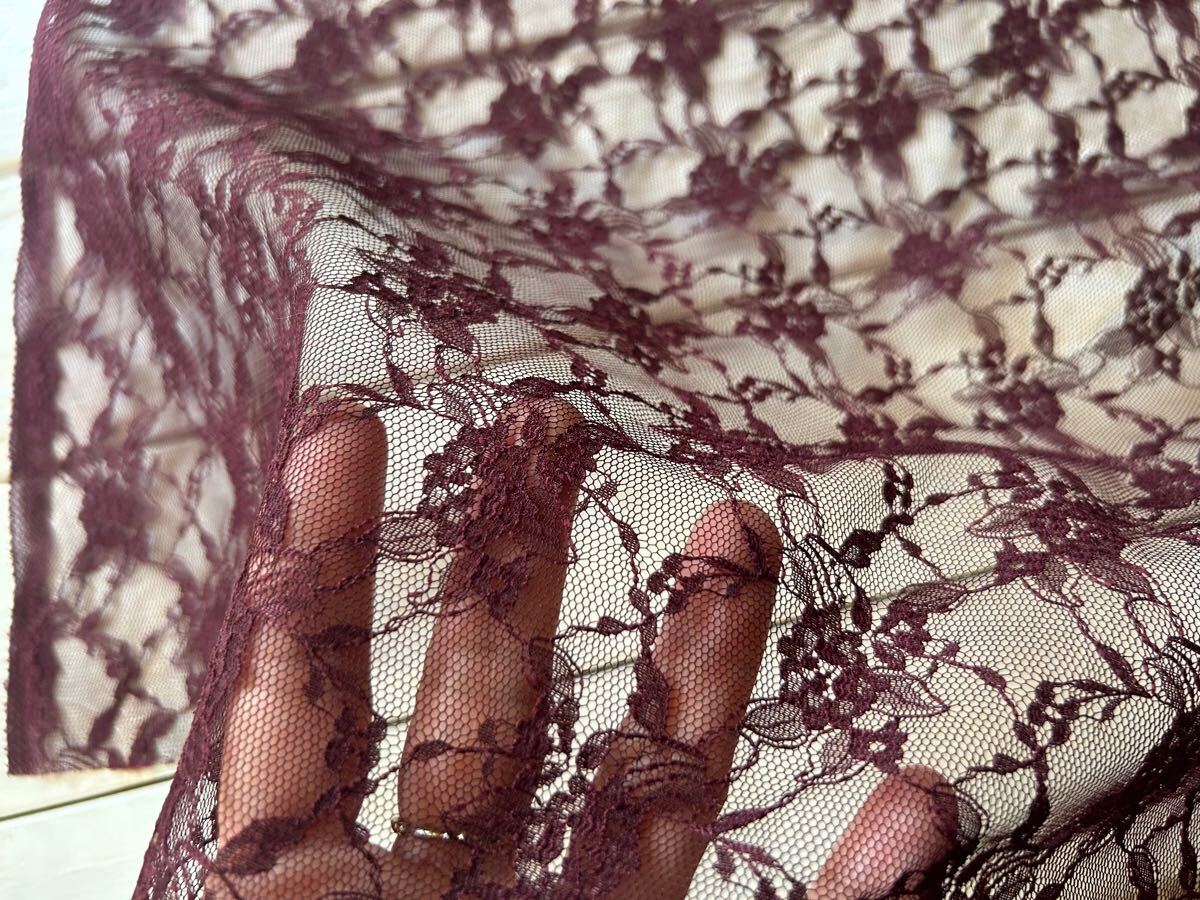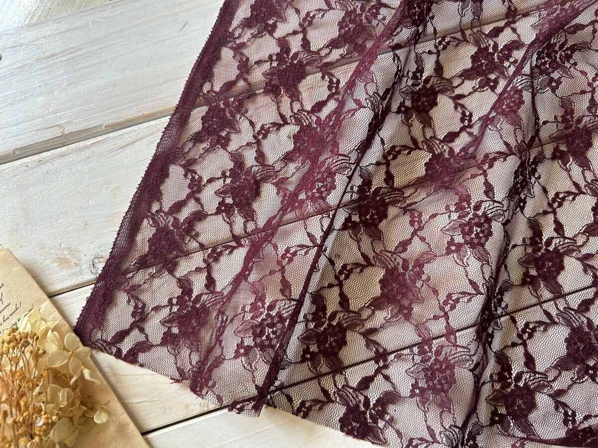■総レース生地■レーシーフラワー  ワイン■ 0.5m■延長可能