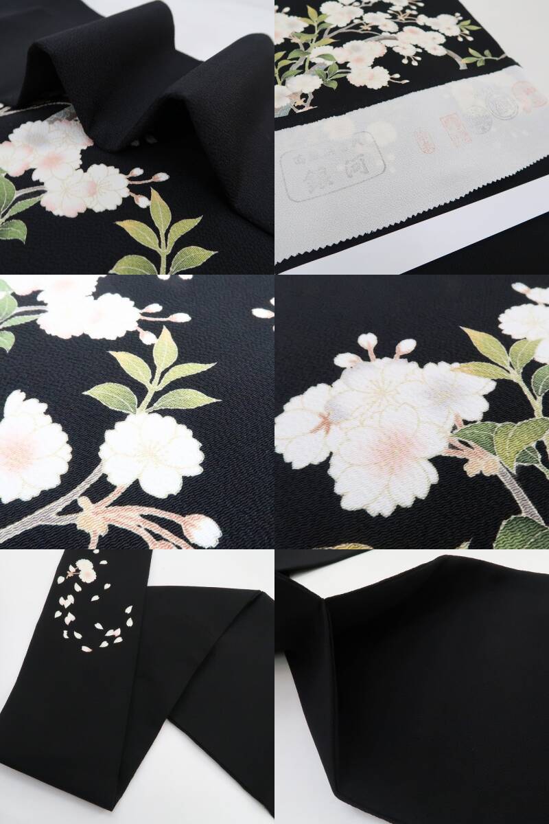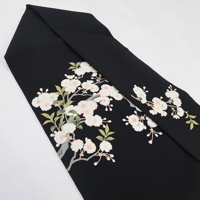 正絹素材のしなやかな質感に黒の帯地が放つ滑らかな光沢、まるで日本画のように描きこまれた桜の一景、それは正に洗練の意匠に薫り立つ和を心得た大人の色艶…醸し出される趣に誰をも惹きつけるこの帯の魅力が潜んでいます。
