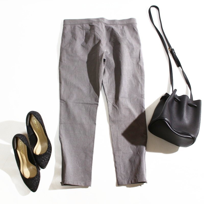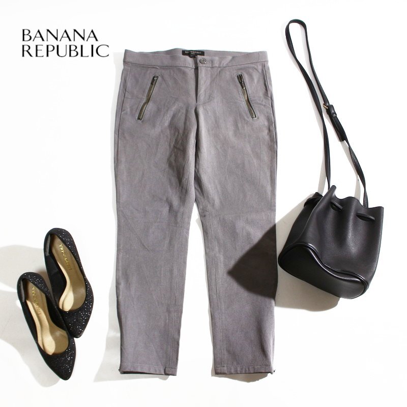 美品 バナナリパブリック Banana Republic ストレッチ コットン タイト テーパードパンツ 2S グレー XS 裾ジップアップ 踝丈