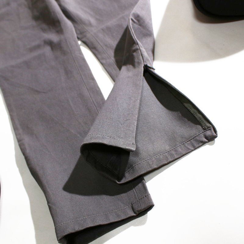 ストレッチが効いたカラーデニム、裾サイドにジッパー、お洒落な1枚です。