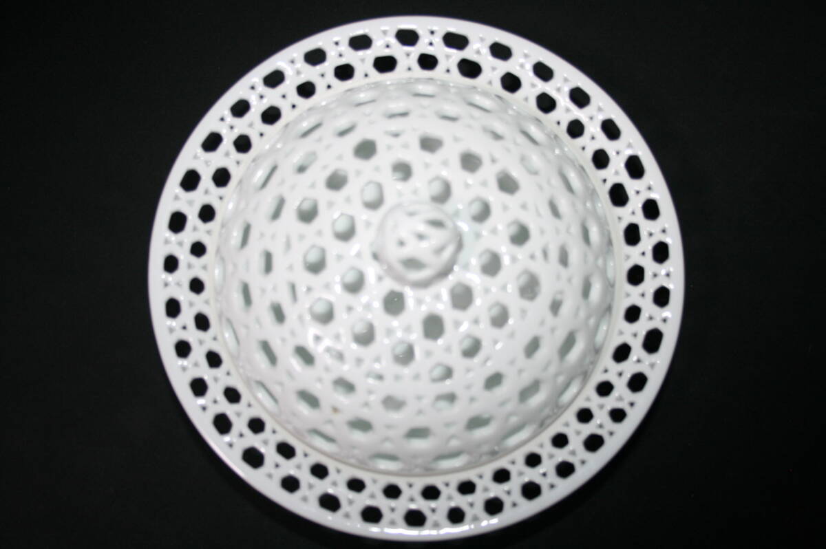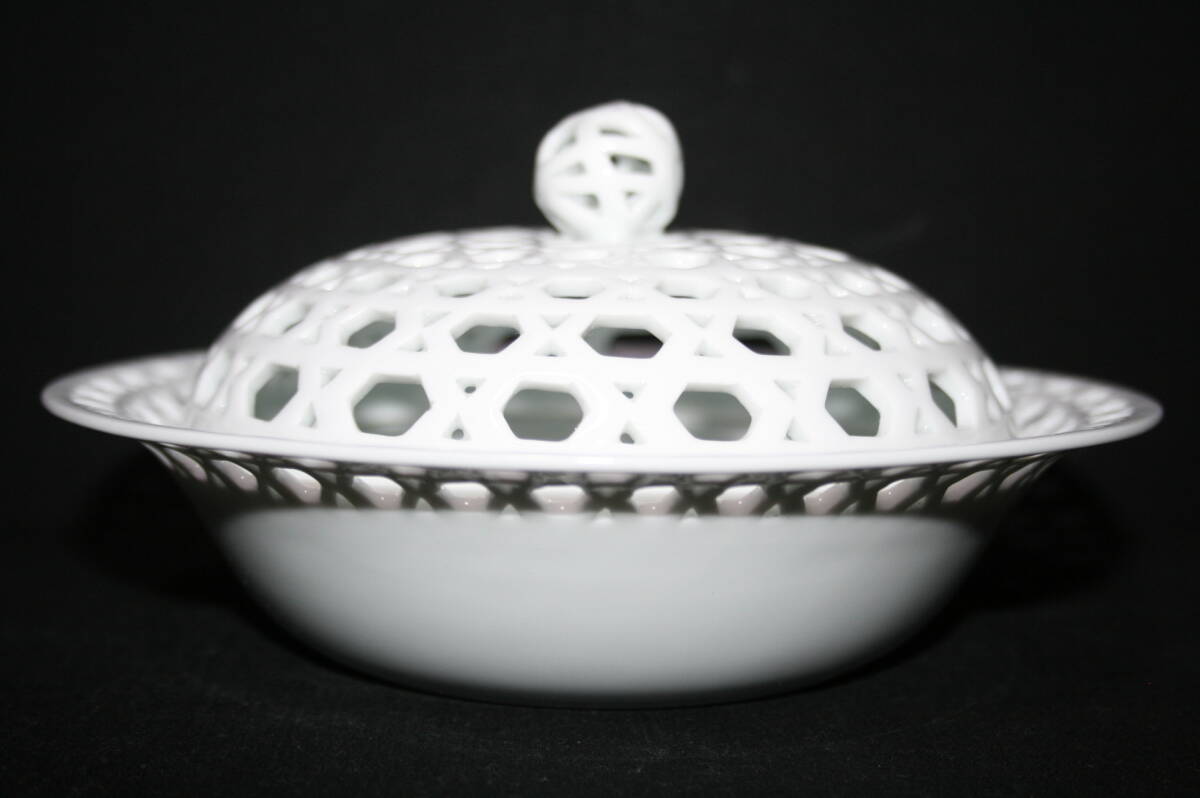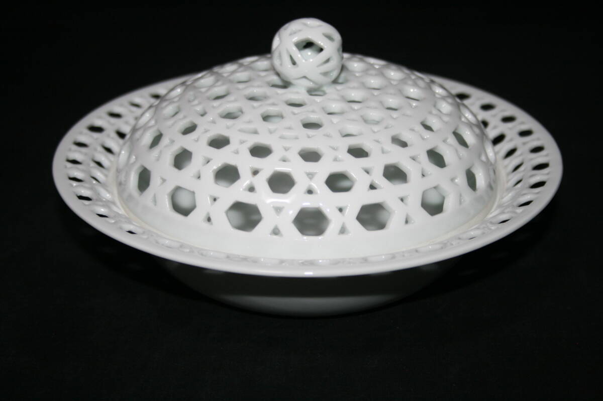 平戸三川内焼/十四代 平戸玉泉/白磁/蓋物です。伝統の透彫を施した雰囲気の良い品です。
