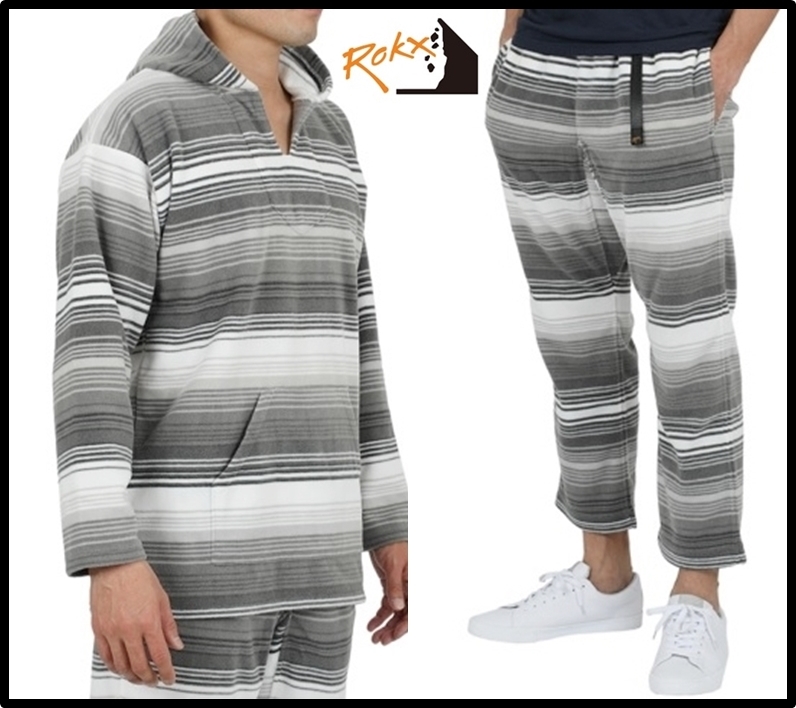 ~グラミチ(GRAMICCI)の創始者 マイク・グラハムが立ち上げたブランド~ ロックスのフリース 上下セットアップです。 メキシカンパーカーをモチーフにしたデザインの フリースパーカーとクロップド フリースパンツ。 パーカーはカンガルーポケット付き、 パンツの股下には180度開脚可能なガセットが設けられています。 ウエスト ゴム入り&調節紐付きです。 上下共にゆったり大き目なシルエットで ふんわり軽い着心地も気持ちがよく快適です。 ボーダー柄のやさしい色合い、上下別々のコーディネイトも楽しめ 多目的にご愛用いただけます。 タウンユースはもちろん、キャンプやテントでの リラックスウエアとしてもお勧めです。 ◇ポケット パーカー:カンガルーポケット パンツ:両サイドハンドポケット 、お尻ポケット×1 ◇フォワード・アパレル・トレーディング(株)正規品 ◇状態:未使用 下げ札付き 外装なし 参考まで: トップス:BEACH FLEECE BAJA 9,800円+税 パンツ:BEACH FLEECE EZ ROKX 9,800円+税 ◇素材:ポリエステル100% ◇カラー:オフホワイト (オフホワイト×グレー系) ★サイズ表記 S 実寸は以下になります 身幅 52cm 着丈 68cm(背面) 裄丈 79cm パンツ ウエスト 約72cm~82cm位 ( 平置き 約37cm 平置き 最大約41cm ) 股上 34cm 股下 68cm 裾幅 20cm ※スニーカー等は付属しません ※柄物の為 多少の個体差はご了承ください ※多少の誤差はご了承ください ※商品寸法には個体差による若干の誤差がございます ●モニター環境により実際のお色と異なる場合がございます ●ご新規 評価一桁の方は入札ご遠慮ください ●採寸方法は全アイテム「平置き」です。 採寸方法により、若干の誤差(伸縮による1~2センチの誤差)は あると思われますがご了承下さい | |||
