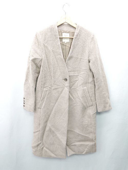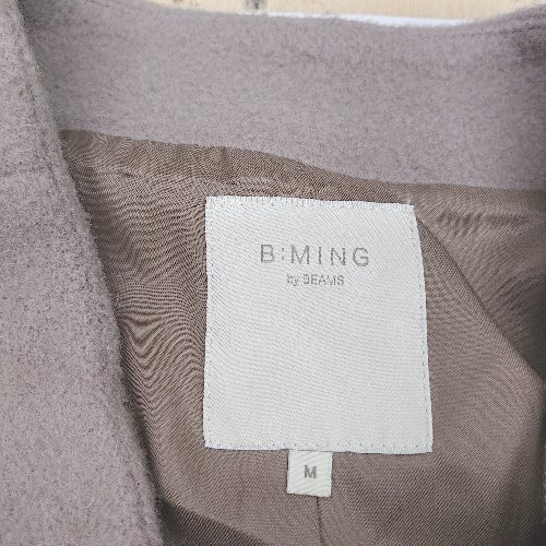 ◇ ⊇ B:MING by BEAMS ビームス ウール混合 長袖 ノーカラーロングコート サイズM ベージュ レディース E