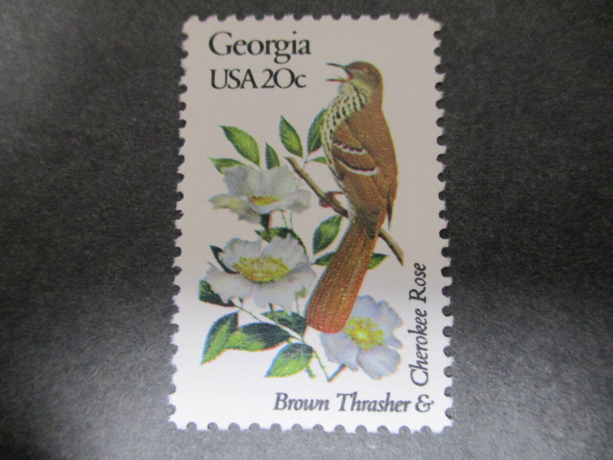 ★★★ アメリカ 1982年 【 州花と州鳥 ジョージア州 ナニワイバラ/チャイロツグミモドキ 】 単片 未使用 糊無 ★★★鳥類/植物