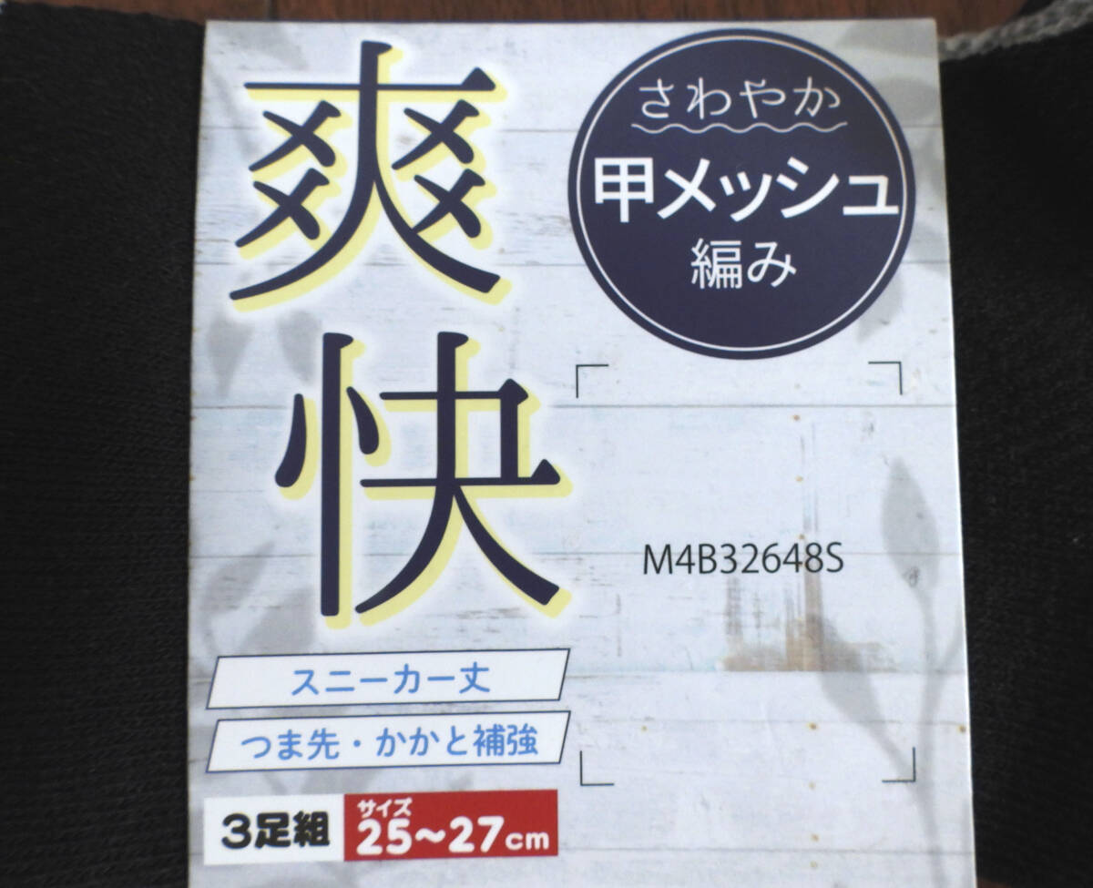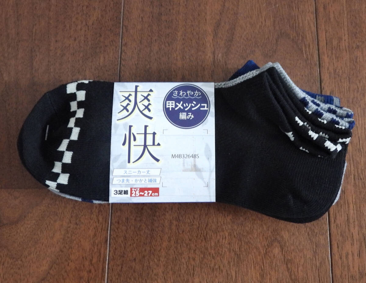 スニーカー丈 3足組 爽快 甲メッシュ編み ソックス MENS 25-27cm【新品未使用】