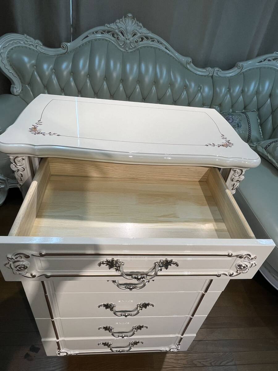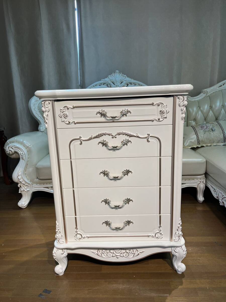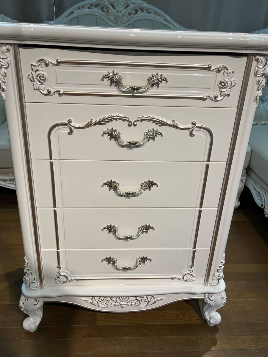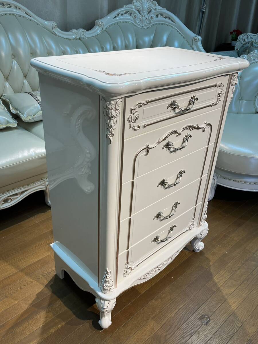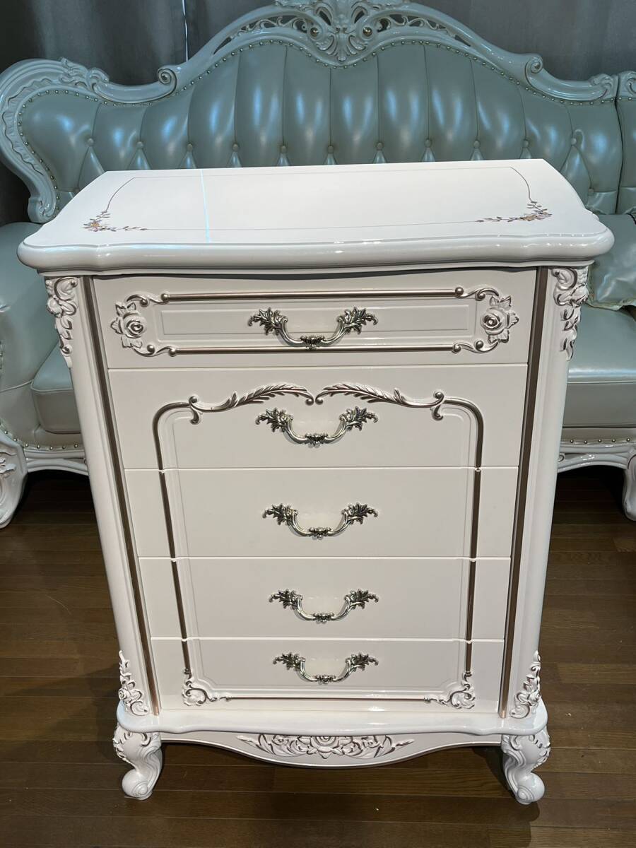 主な販売方法をインターネットに傾注することで、営業にかかる人件費や膨大な店舗運営経費を最小化し、大幅なコストカットを実現しています。自社提携工場で生産し、直接自社倉庫からお客様の元にお届けすることで、一次問屋・二次問屋等の中間マージンをカットしています、低価格かつ高品質な商品ラインナップを実現しました。ホテル、レストラン、オフィスのまとめ買いを検討されている法人様・個人事業主様・個人様のご要望に合わせてお見積りをいたします。家具や大型家具を中心に家具全般の大量注文・OEMを承っておりますお問合せ・お見積りは無料となりますので、おまとめ買いを検討中の方は、お気軽にご利用ください。送料や人件費の圧縮により、少しでもお値引きが可能な場合は、その都度それを踏まえた最良のご提案をさせていただこう商品説明サイズ本体 幅80cm×奥行き45cm×高さ110cm*若干の誤差はご了承ください。素材化粧繊維板、優雅なリ姫系のデザインを施してあります。豪華なチェストです。温かみのあるホワイトがフローリングの洋室などによく合いますよ♪姫系バラ柄デザインもレトロで素敵なデザインですね。今人気の足高チェストでお部屋に置くだけで室内の雰囲気アップにも役立ちます!存在感があるのにシンプルでシックな大人インテリアに最適です!また、カフェインテリア、雑貨屋のディスプレイ、ショップの飾りつけにも役立ちそうな家具です。複数在庫あり!!大量の注文も受けます決済方法●簡単決済●銀行振込*消費税頂きません。領収書発行可能です。送料*奈良県近辺の方は送料の相談が出来ます。