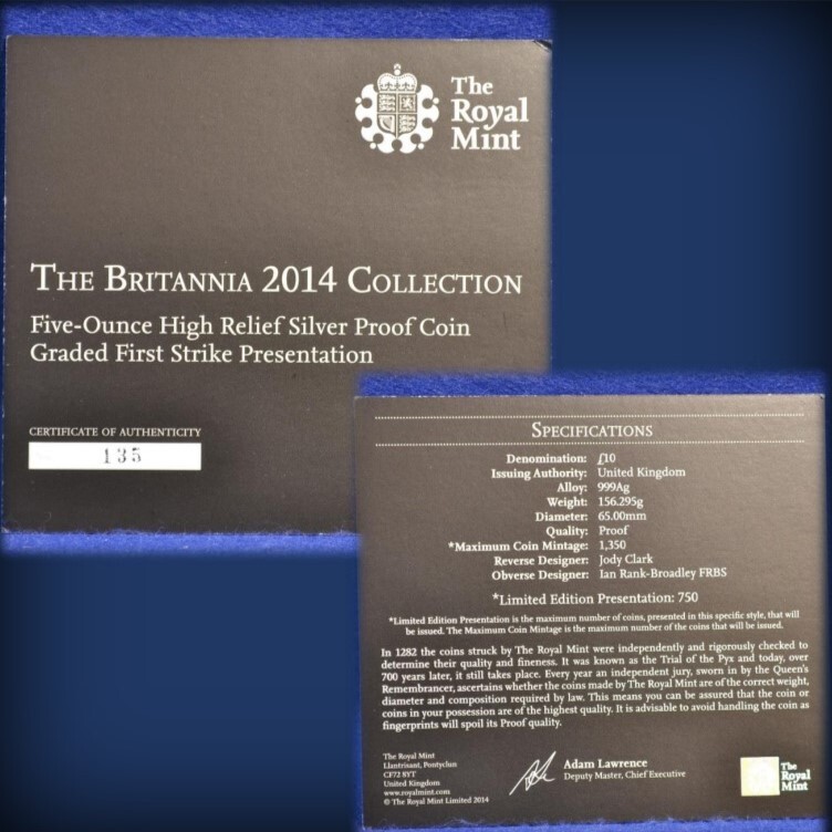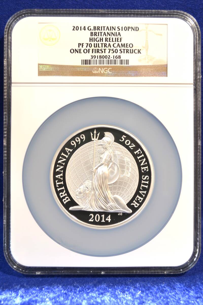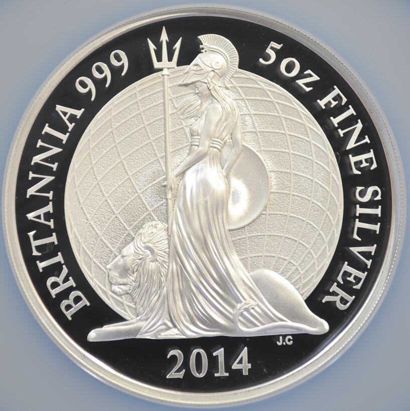 ◆シリーズ一番人気 5オンス 大型銀貨 2014 ブリタニア ライオン◆最高鑑定 PF70 UC 初回限定750枚 エリザベス 10ポンド イギリス NGC PCGS
