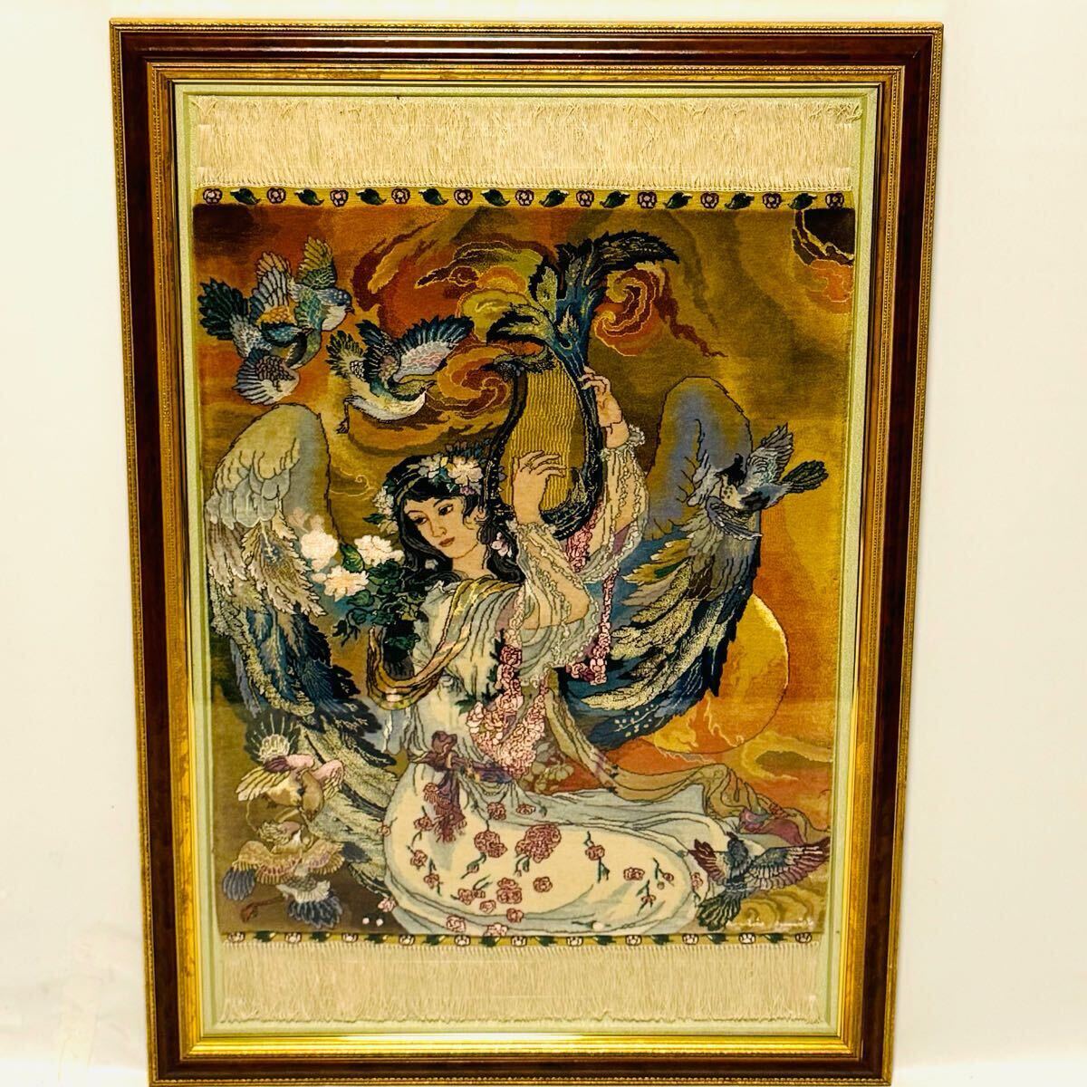 中国美術緞通 天女 段 手織り絨毯 飾り 額付き