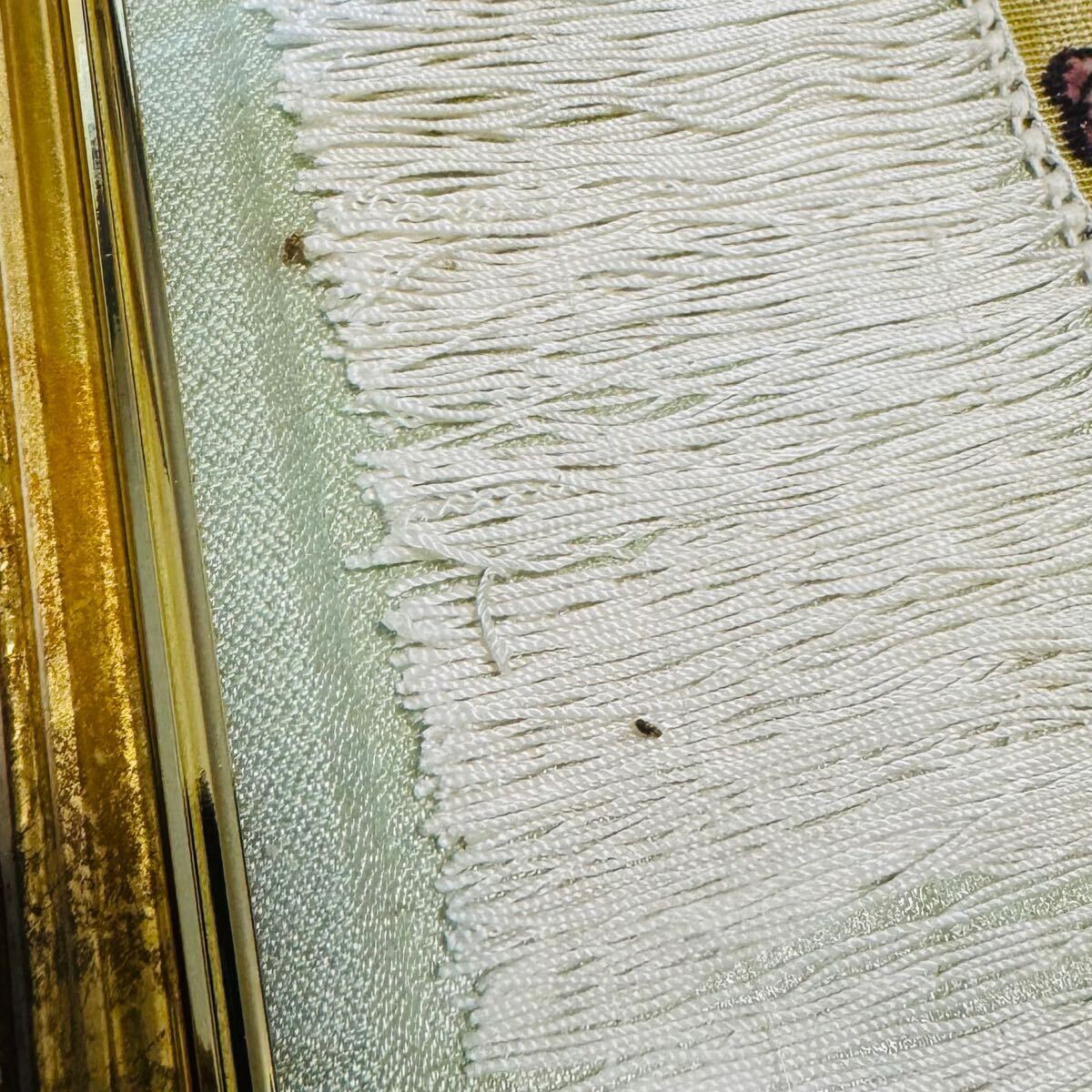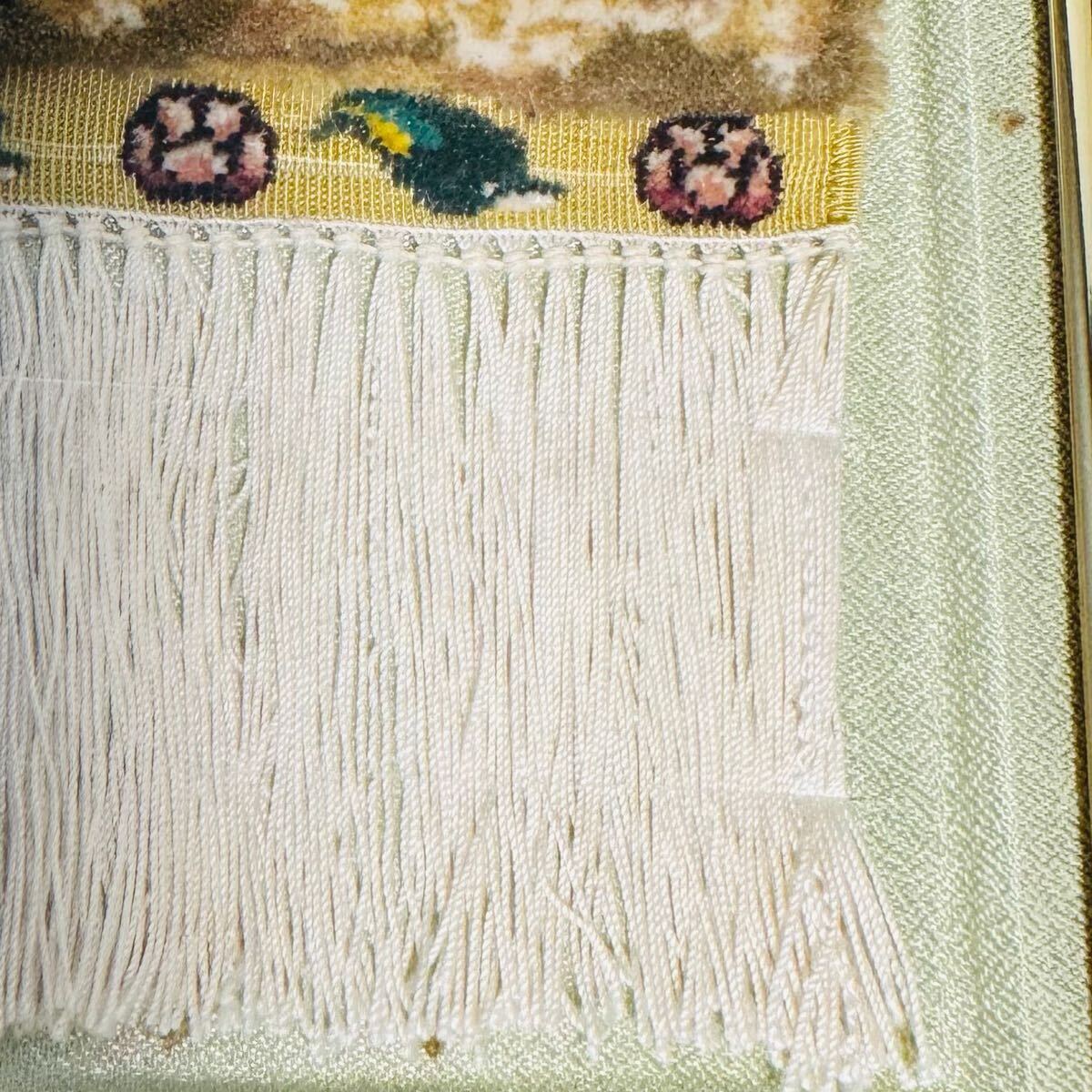 素材詳細は不明ですが、房や織りの精密さ、光沢から見て「シルク段通」と思われます。