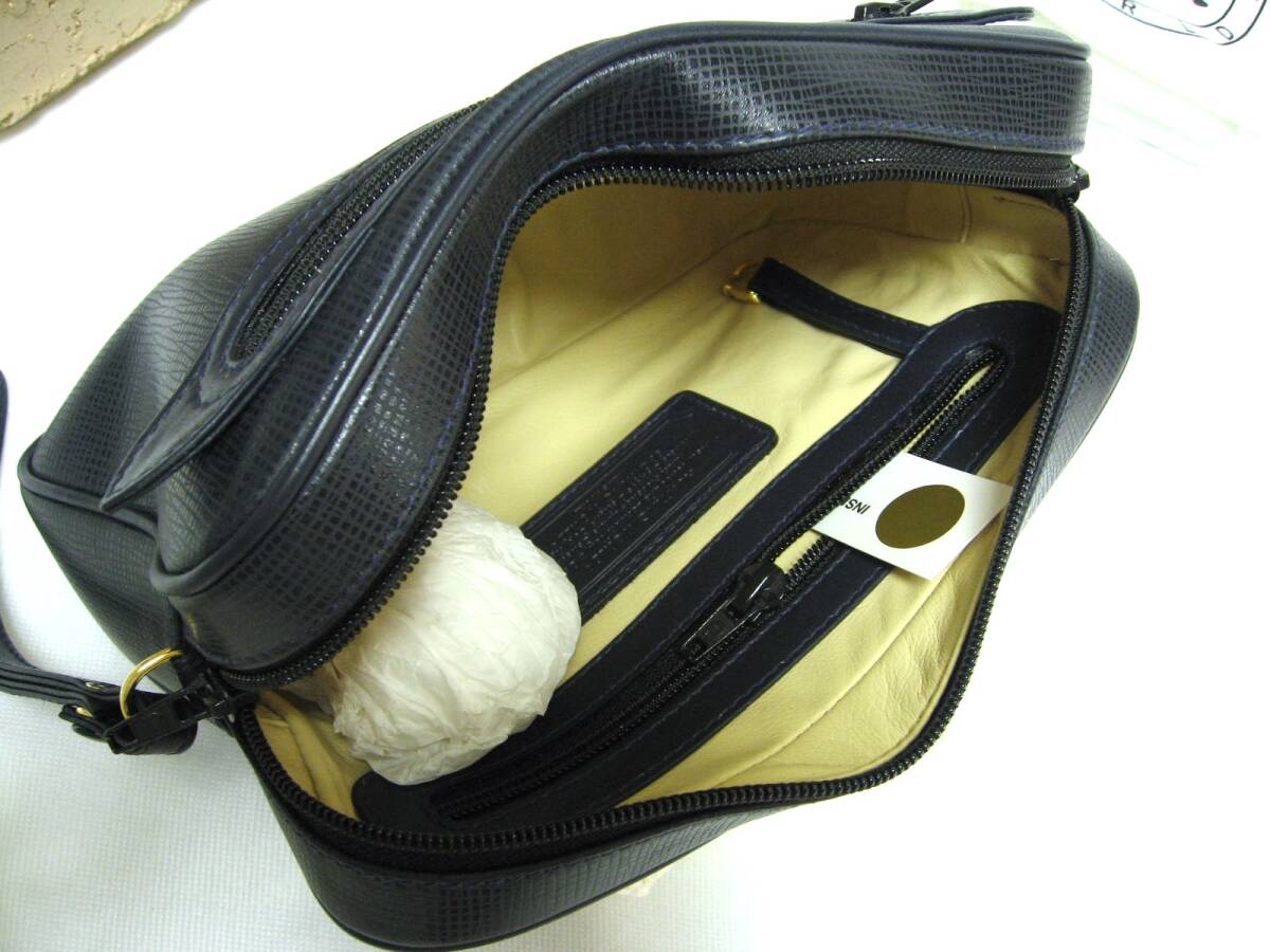 ★仕様・・・・・①ボタン取り外し式レザーストラップ付き②外側/両面にファスナー式ポケット各1ヶ所③内側/ファスナー式ポケット1ヶ所、キーリング1ヶ所有り