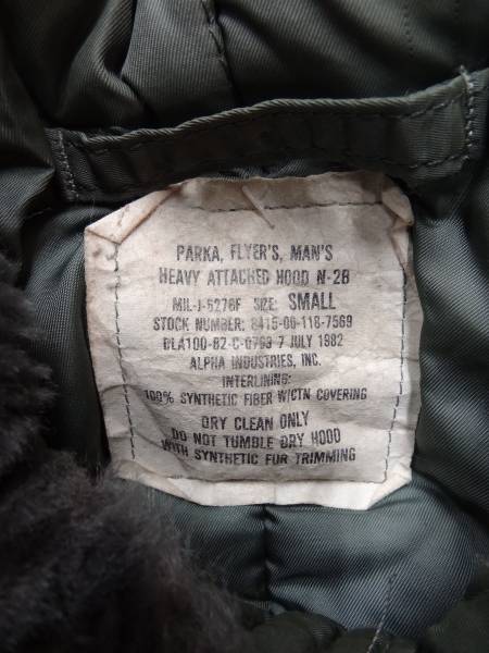 ビンテージ US ミリタリー 米軍 アルファ 82年製 N2B フライト フード ナイロン ジャケット サイズ S エアフォース ボア USAF MA1 グリーン