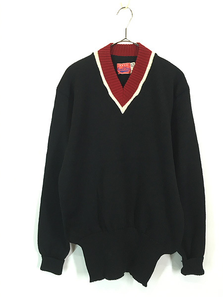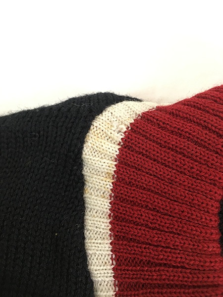 荒めのウールニット・腹巻リブとも呼ばれる裾の長リブ。
