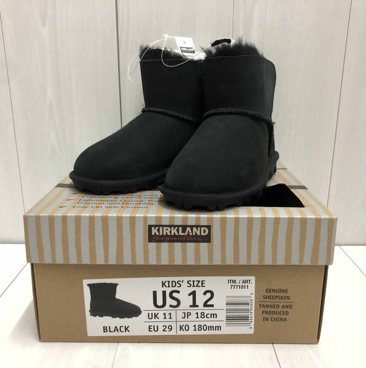 新品 18cm ★ コストコ キッズ ムートン ブーツ ブラック カークランドシグネチャー 黒 シープスキン 羊革 子供用 本革 18.0 17.5 18.5