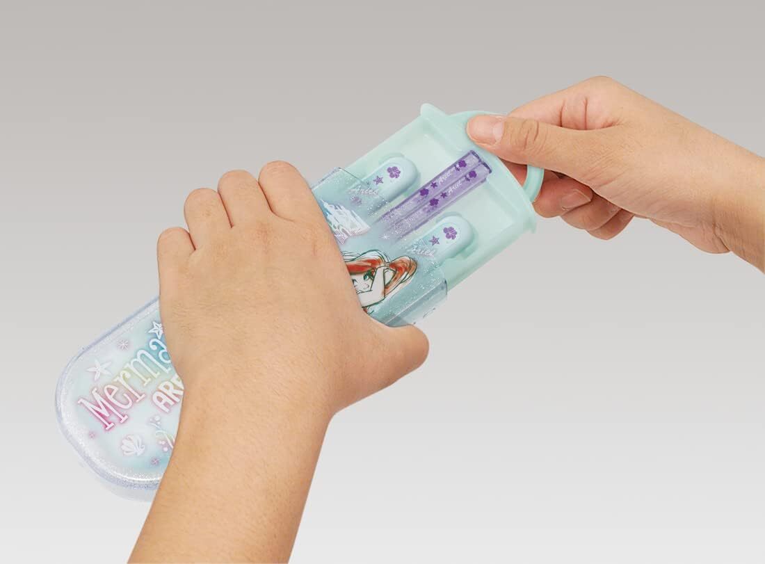 ディズニー リトルマーメイド アリエル のデザインの 日本製 お箸 スプーン フォーク ケース入り トリオセット 。