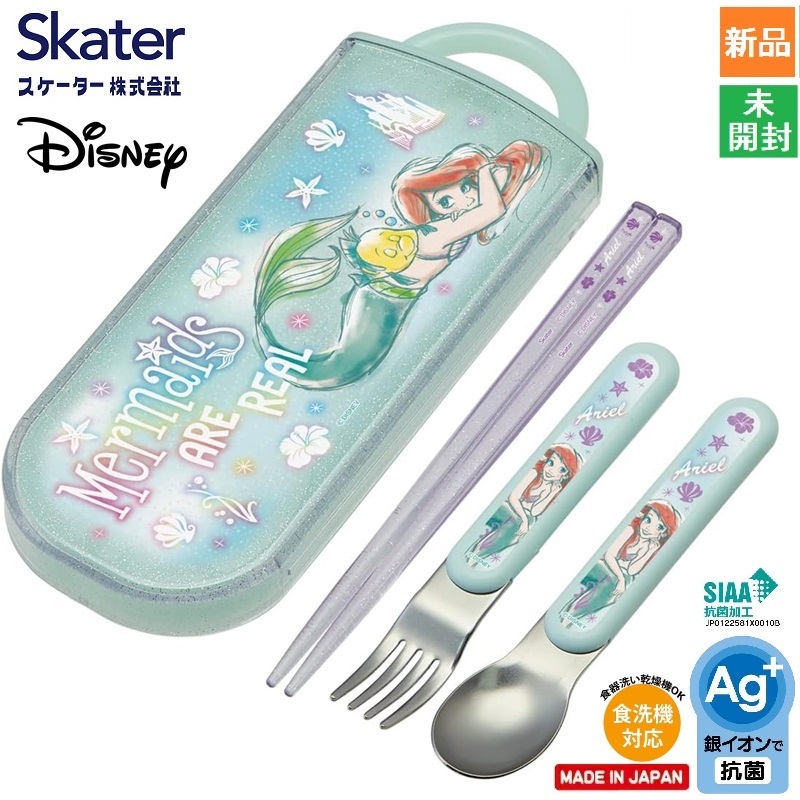ディズニー リトルマーメイド アリエル 送料無料 スケーター 子供用 抗菌 スライド セット (箸 スプーン フォーク) 日本製 新品 未開封