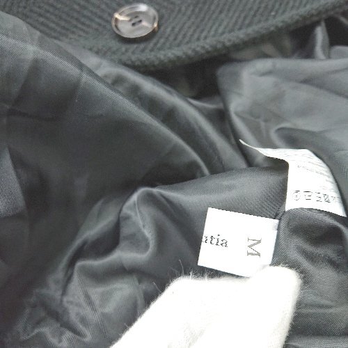 ◇ ⊇ callautia カラウティア ロング丈 ヘリンボーン 長袖 ステンカラーコート サイズM ブラック メンズ E