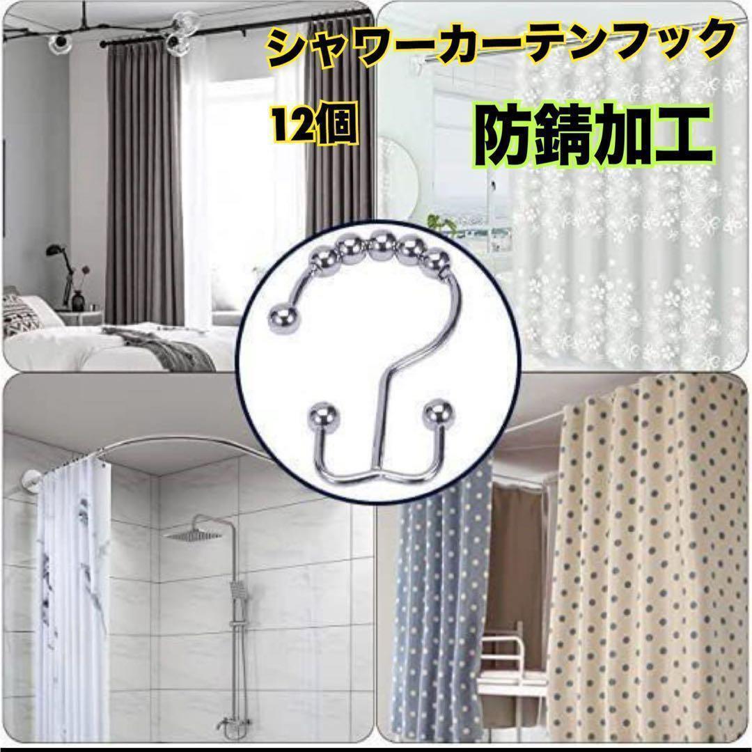 シャワーカーテンフック 防錆 12個セット 錆びにくい 簡単取り付け 浴室 スムーズ 風呂 取付簡単 スライド ホテル アパート