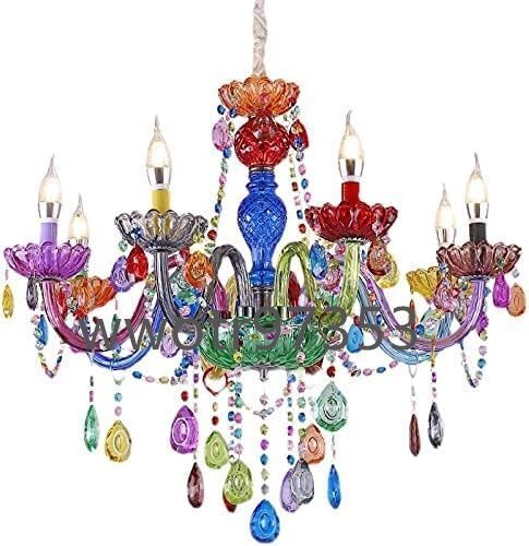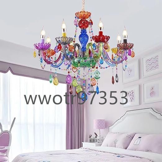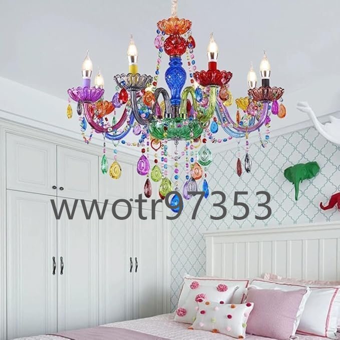シャンデリア 8灯 彩色クリスタル オシャレ 姫系 照明器具 カラフル飾りライト雰囲気作り LED対応 口金E14