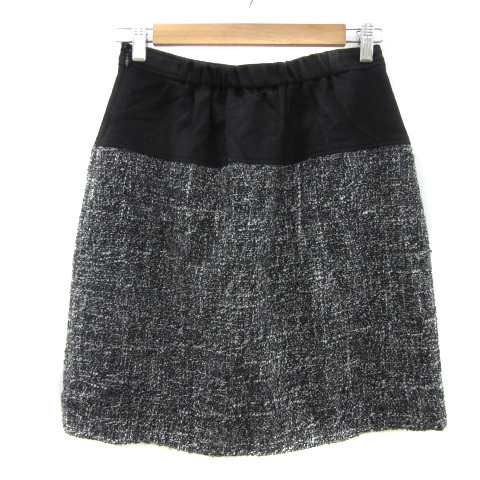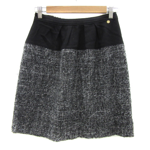 リミテッドエディション LIMITED EDITION フレアスカート ひざ丈 切替 ツイード 38 M 黒 ブラック グレー /YS13 レディース