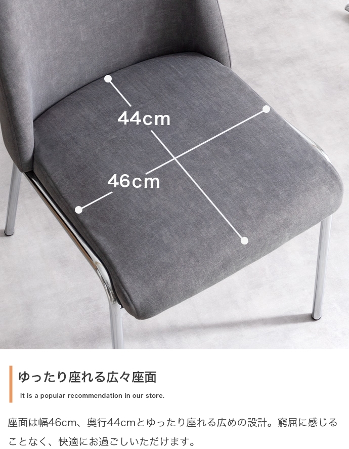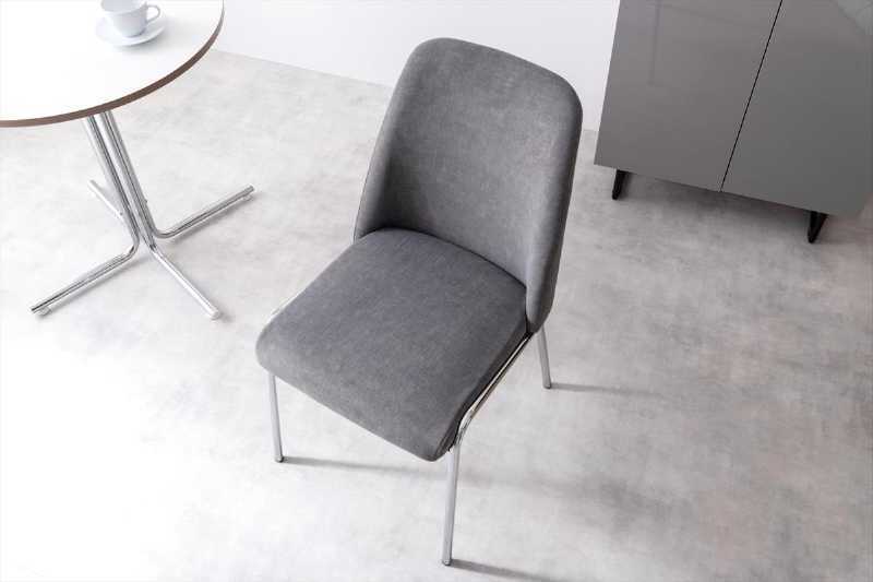 しっとりとした上質なファブリック生地×シルバー脚が洗練された雰囲気を与えるダイニングチェア。