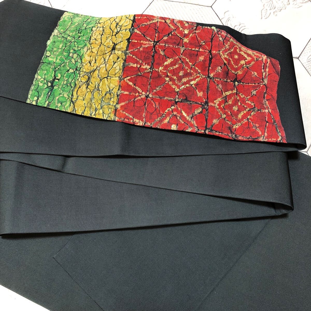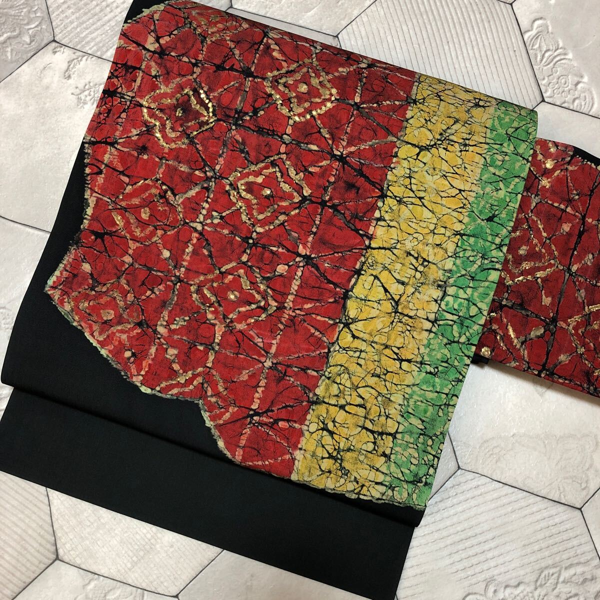 アンティーク 名古屋帯 着物 昭和レトロ 大正ロマン モダン 和洋折衷コーデ リメイク 黒地 金彩 絹 正絹100% し18-14w