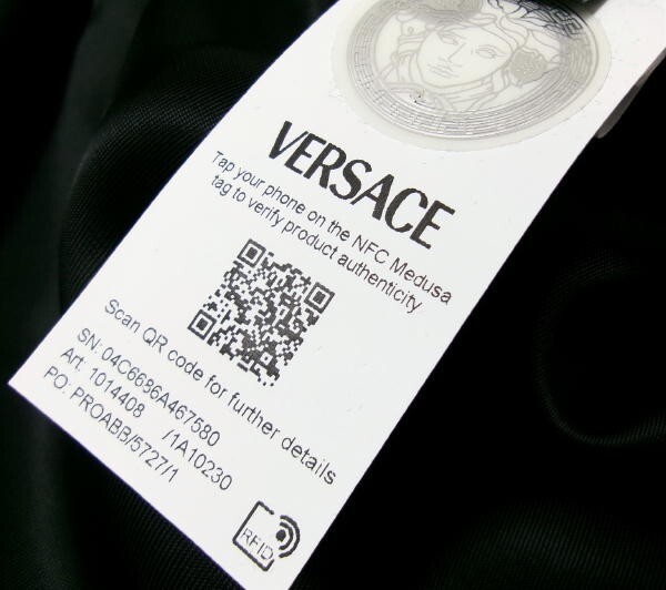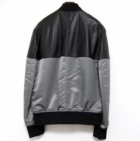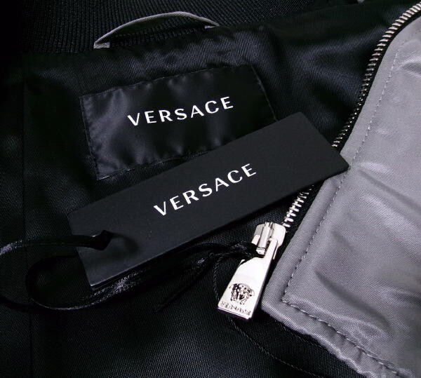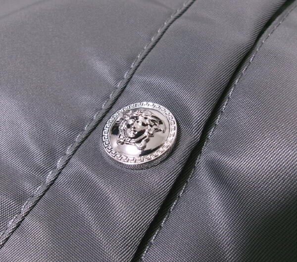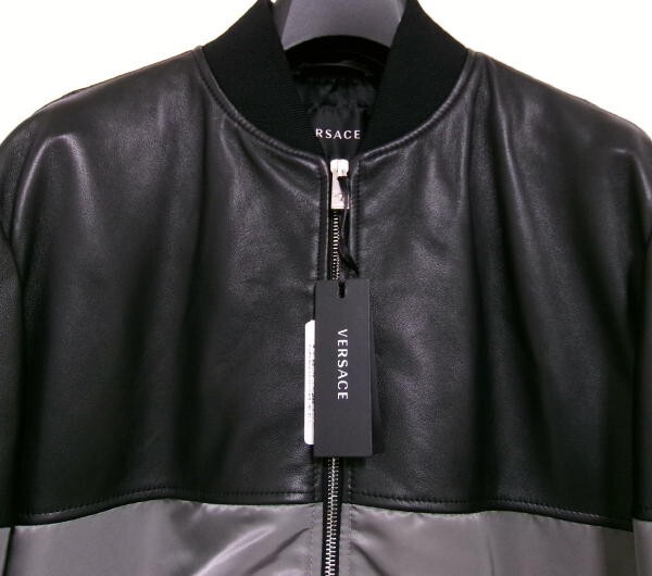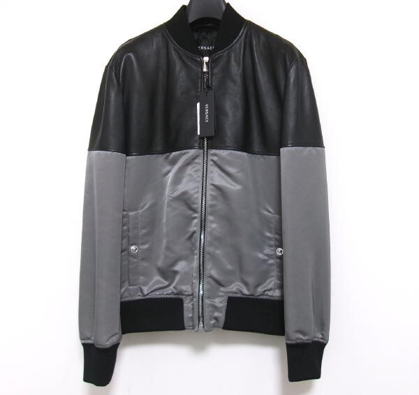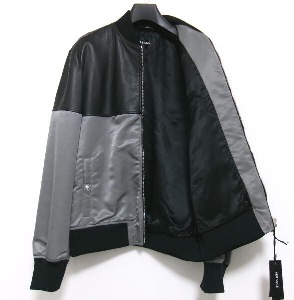新品★VERSACE ヴェルサーチ★レザー ナイロン ブルゾン ジャケット★48 M メデューサ ブラック グレー イタリア製 羊革
