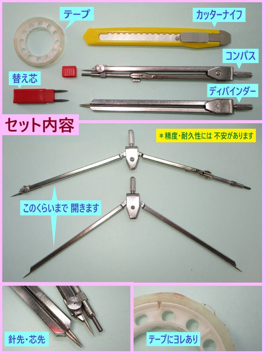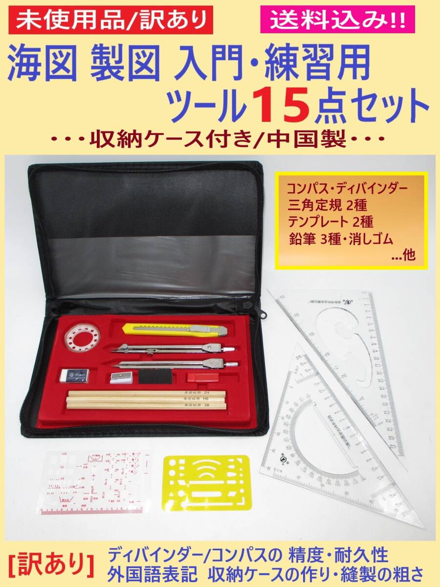 | 撮影・確認のため、 収納ケースを開封しましたが、未使用品です。 専用のパッケージなどの外装は、ありません。 海図・製図の入門に、 一通りのツールがセットになったお品です。 収納ケースにまとめておけるので、 持ち運びにも便利です。 趣味やインテリアとしての活用も していただけると思います。 海外製のため、定規などの表記は、 全て外国語になっています。 ディバインダーやコンパス等の ツールの精度・耐久性に やや 不安があるようです。 各々のツール・収納ケース共に、 作りの粗さ・弱さ・キズや傷みが見られます。 「カッター」のロックがやや緩いようで、 「刃」が飛び出しやすい傾向があります。 保管時・携帯時など 飛び出した「刃」で怪我をされないよう ご注意下さい。 以上の点より「訳あり」として出品いたします。 以下の商品説明をよくご覧になってから、 ご検討をお願い致します。 神経質な方、完品をご希望の方は、 御入札をご遠慮ください。 【商品内容】 海図 製図に便利な ツールセット セット内容: ・ディバインダー ・コンパス ・カッターナイフ ・テープ ・消しゴム ・鉛筆 3種 ・鉛筆削り ・三角定規 2種 ・テンプレート 2種 ・サンドペーパー ・収納ケース (参考:画像3~6) 収納ケースサイズ: 約27cm×17cm×2.5cm (参考:画像8・9) 重量: 1セット 約350g その他: 中国製・外国語語表記 *中国語・英語 混在 製造メーカー等の詳細は 不明 収納ケースは ややハードタイプ (耐水性などは不明) *状態などは画像にてご確認ください *実際の商品の色味とは異なる場合があります 【状態等】 ・撮影・確認のため、 収納ケースを開封しましたが、未使用品です。 ・専用のパッケージ等の外装はありません。 ・海外製につき、製造上のスレ・キズ・ 作りの粗さ・弱さが見られます。 また、精度・耐久性に不安があるようです。 美品・完品をご希望の方はご遠慮ください。 ・長期保存品につき、 汚れ・埃の付着等がある場合がありますが 御容赦下さい。 ・「カッター」のロックがやや緩いようで、 「刃」が飛び出しやすい傾向があります。 保管時・携帯時など 飛び出した「刃」で怪我をされないよう ご注意下さい。 ・当方はこちらのお品に関しましての知識を 持ち合わせておりませんので、 用具の仕様などの詳細を ご質問いただきましてもお答えできません。 ご了承ください。 以上の点より「訳あり」として出品いたします。 ご承知をいただける方のみ、 ノークレーム・ノーリターンにてご検討ください。 【補足】 ゆうパケットにて発送できる サイズ・厚さに合わせ、 ごく簡易的な商品保護で、 一般的な茶封筒にて発送いたします。 あらかじめご了承ください。 (発送時の状態 画像10) | ||