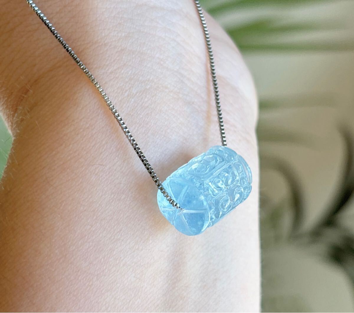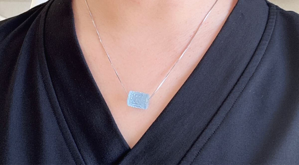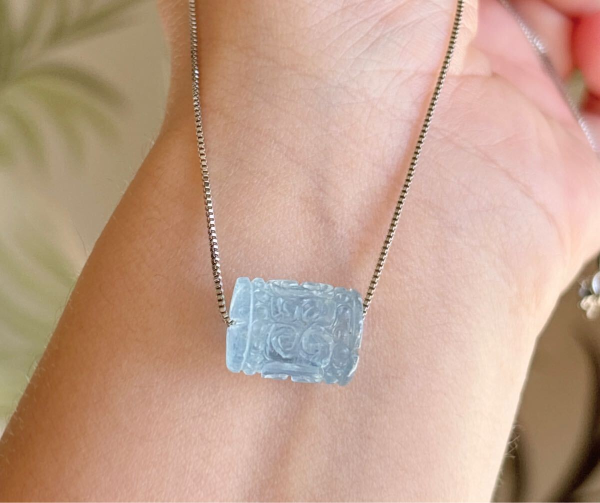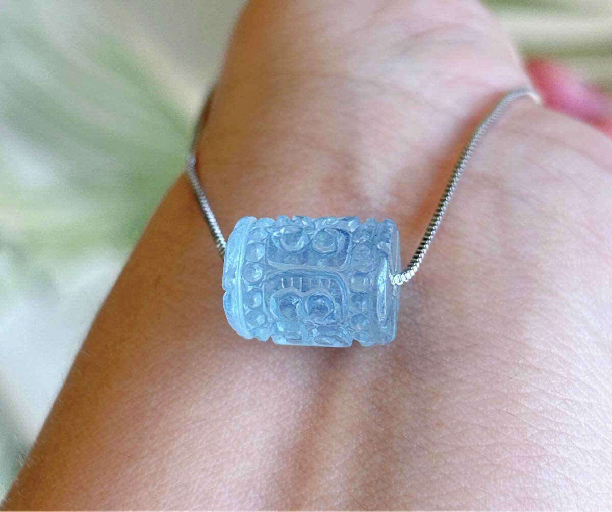 【天然石】逸品モスアクアマリンの回紋珠ペンダントのサイズ:10.8mm*13.8mm