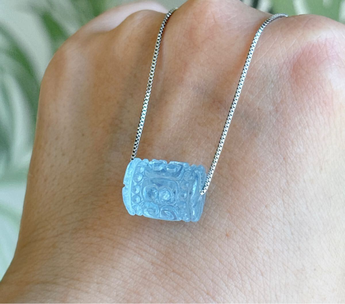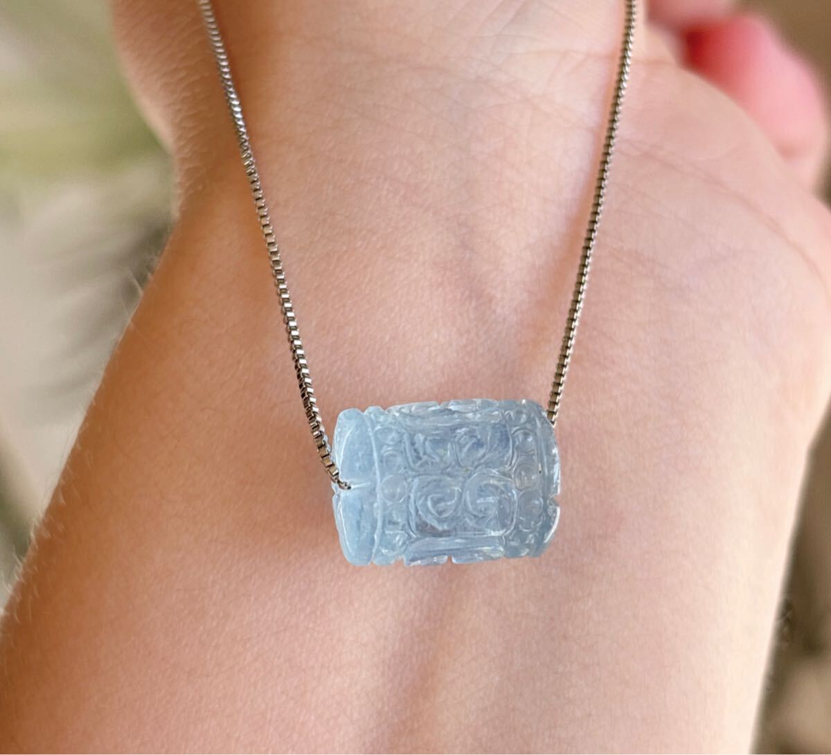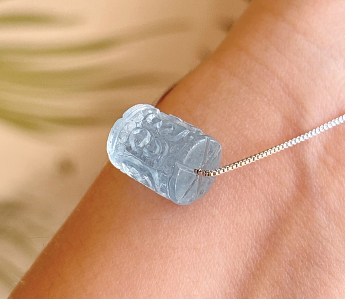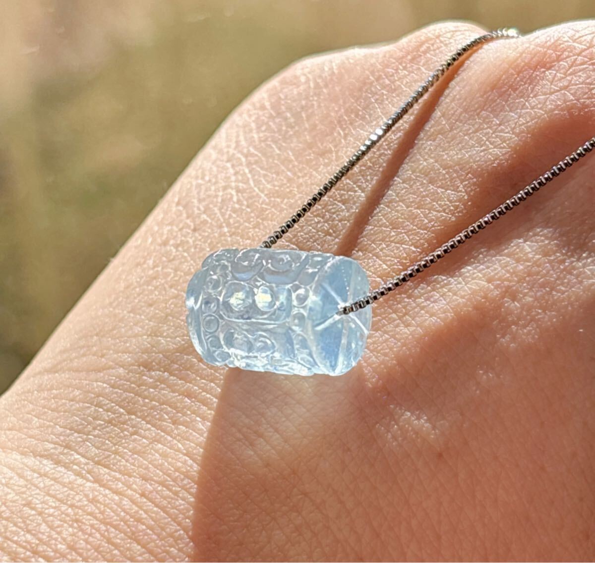 【天然石】逸品モスアクアマリンの回紋珠ペンダントのサイズ:10.8mm*13.8mm