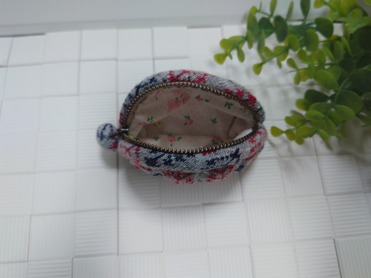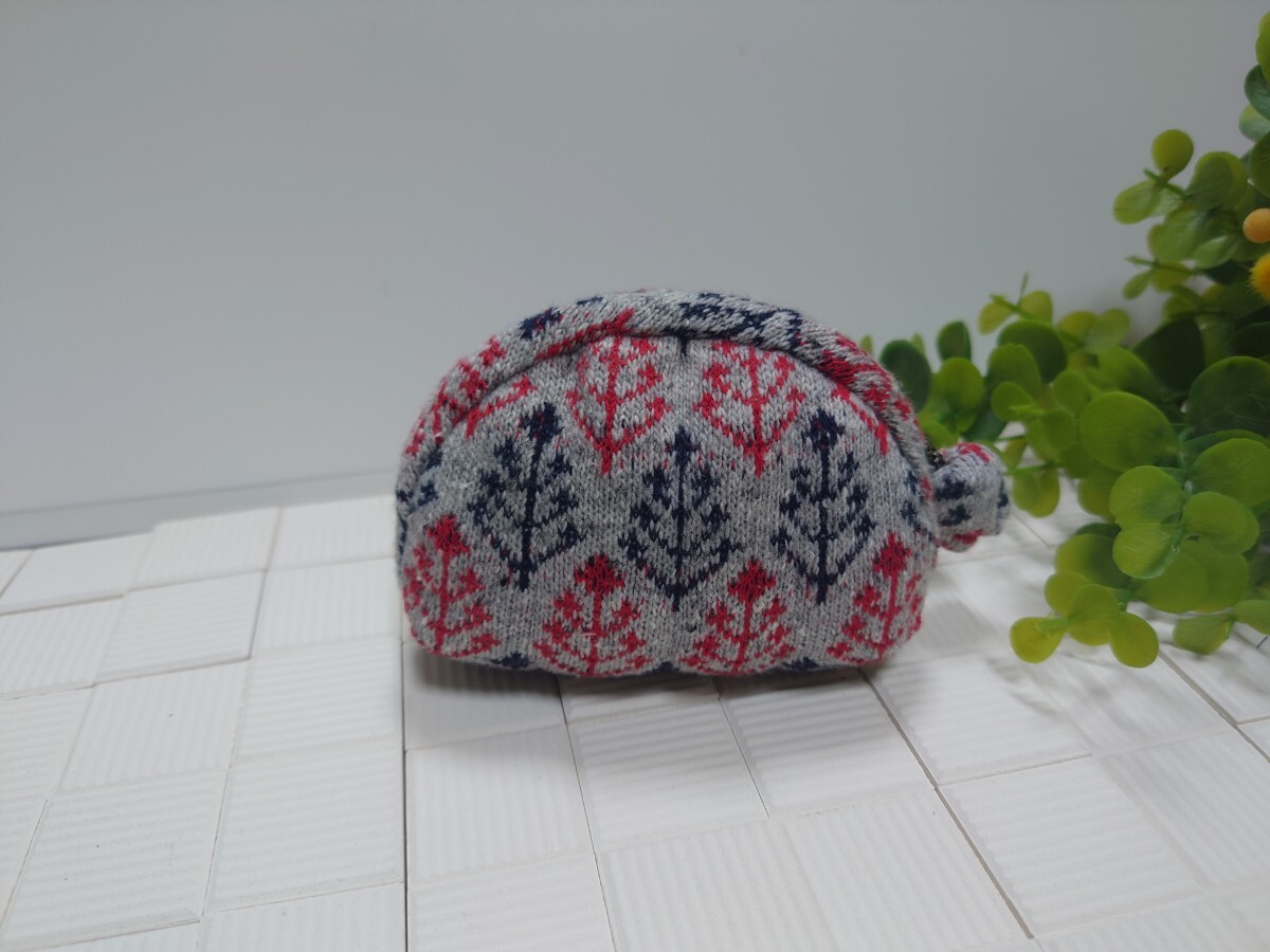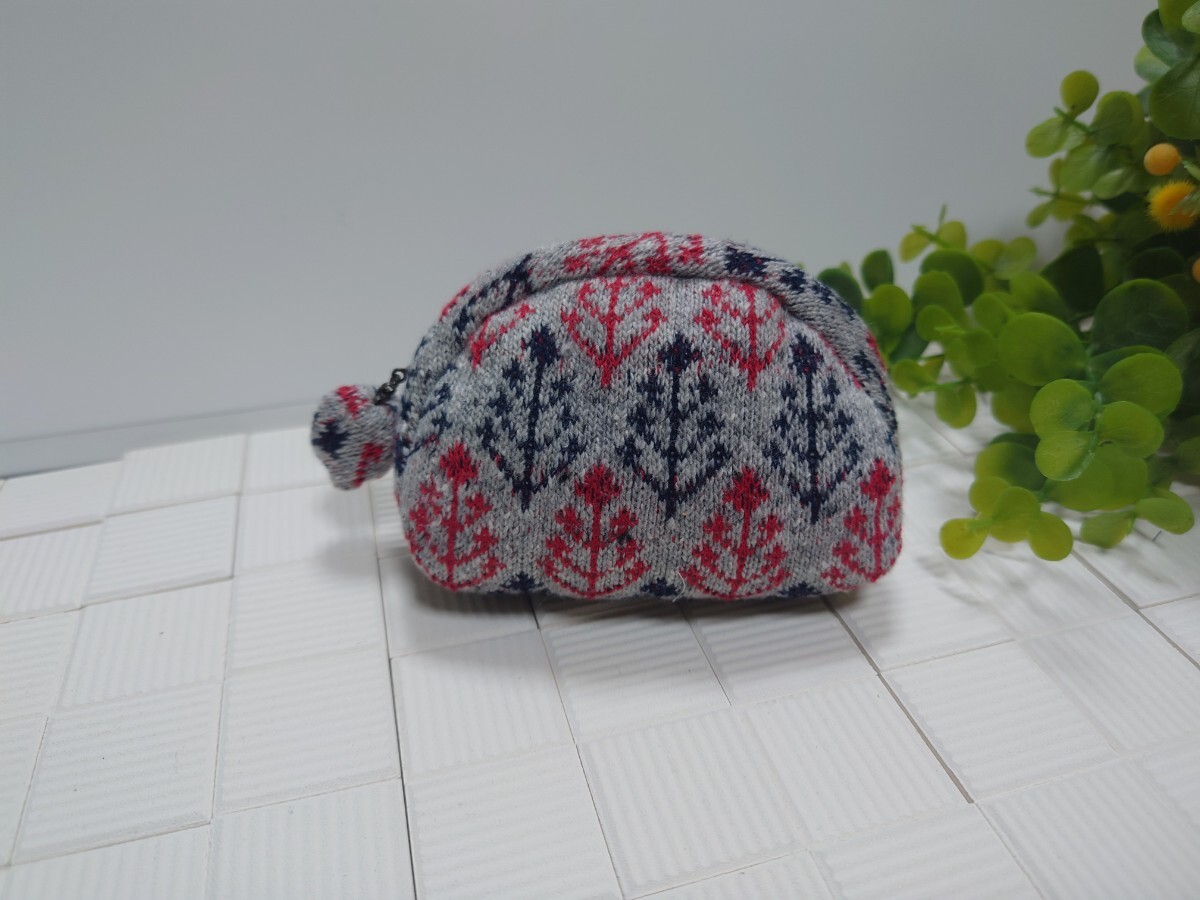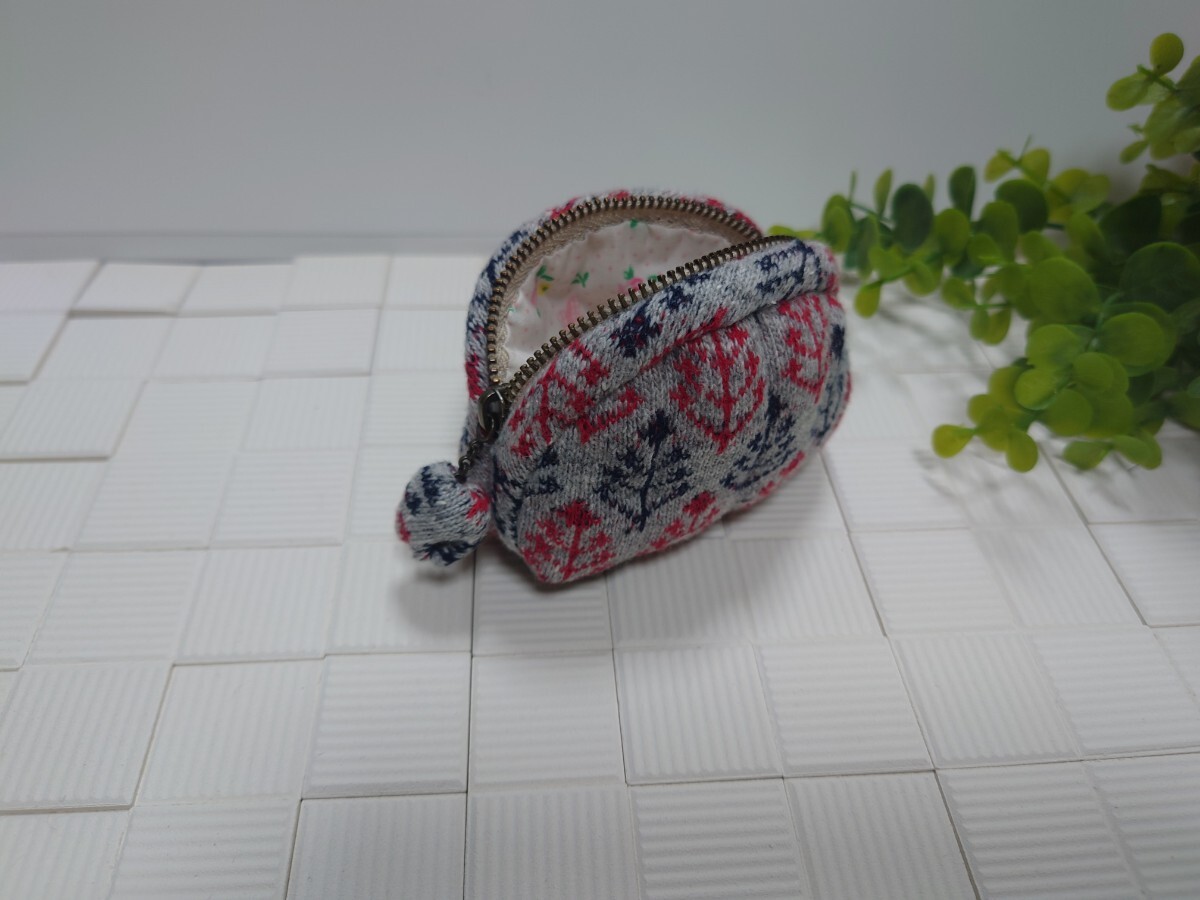 ハンドメイド 可愛いもみの木柄のニット生地ミニポーチです!