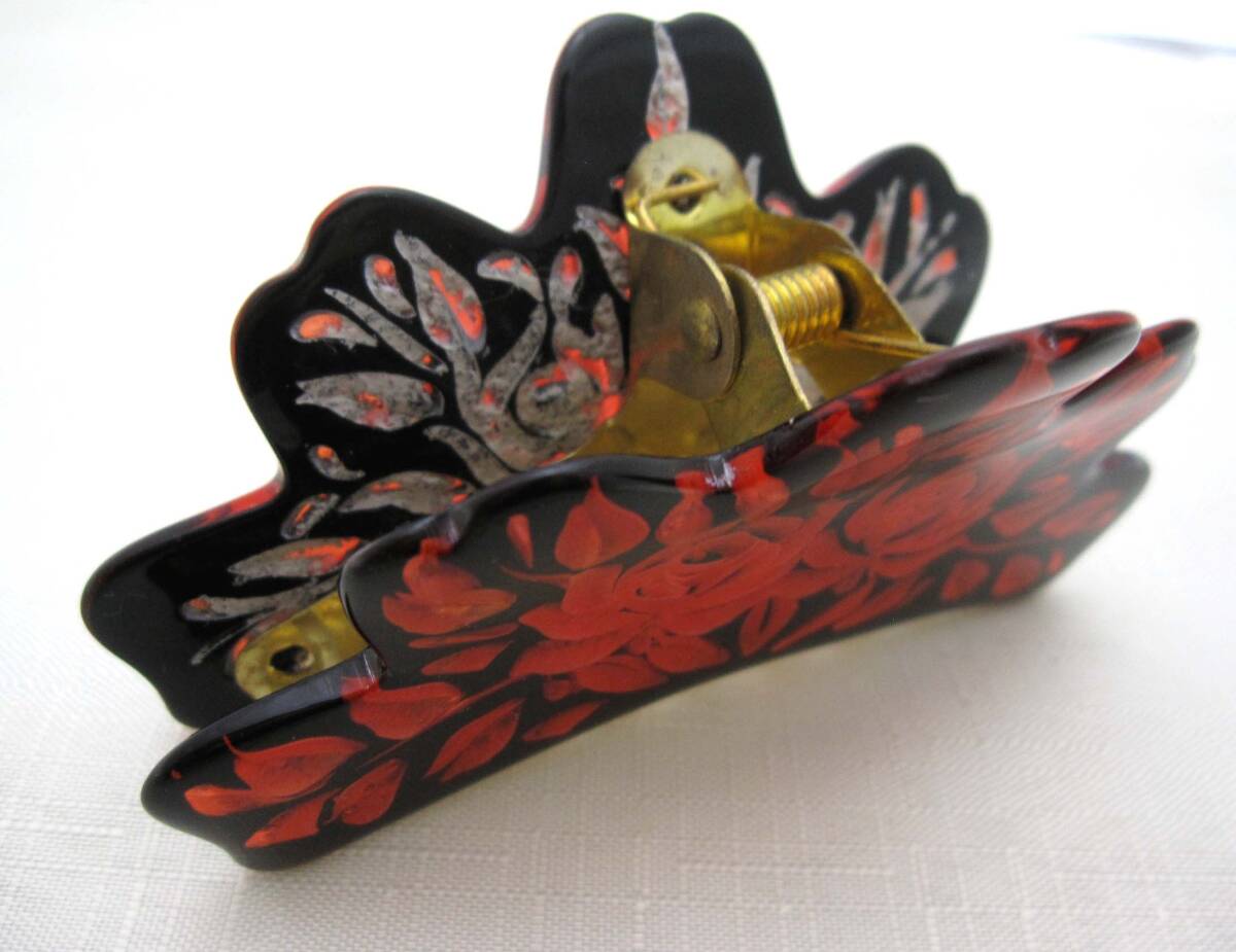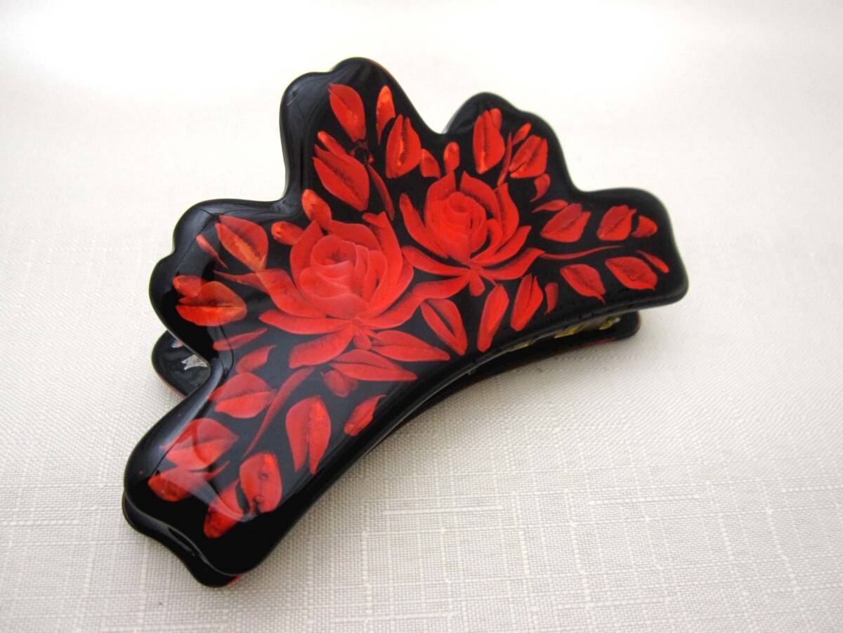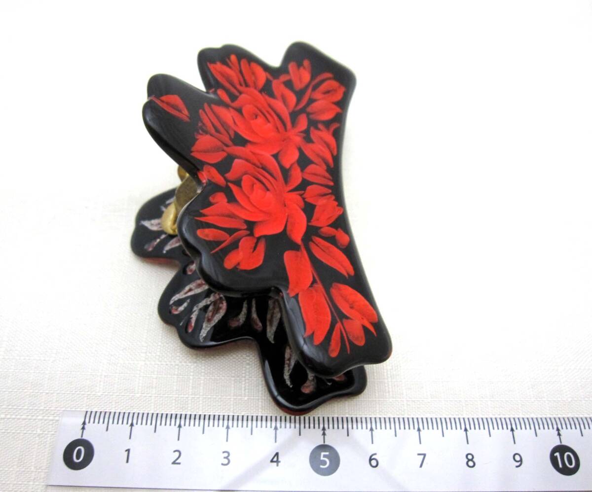 美品 バンスクリップ 赤 ヘアアクセサリー*髪飾り*和装*女子会*透かし*夜会巻*薔薇<241028-1>