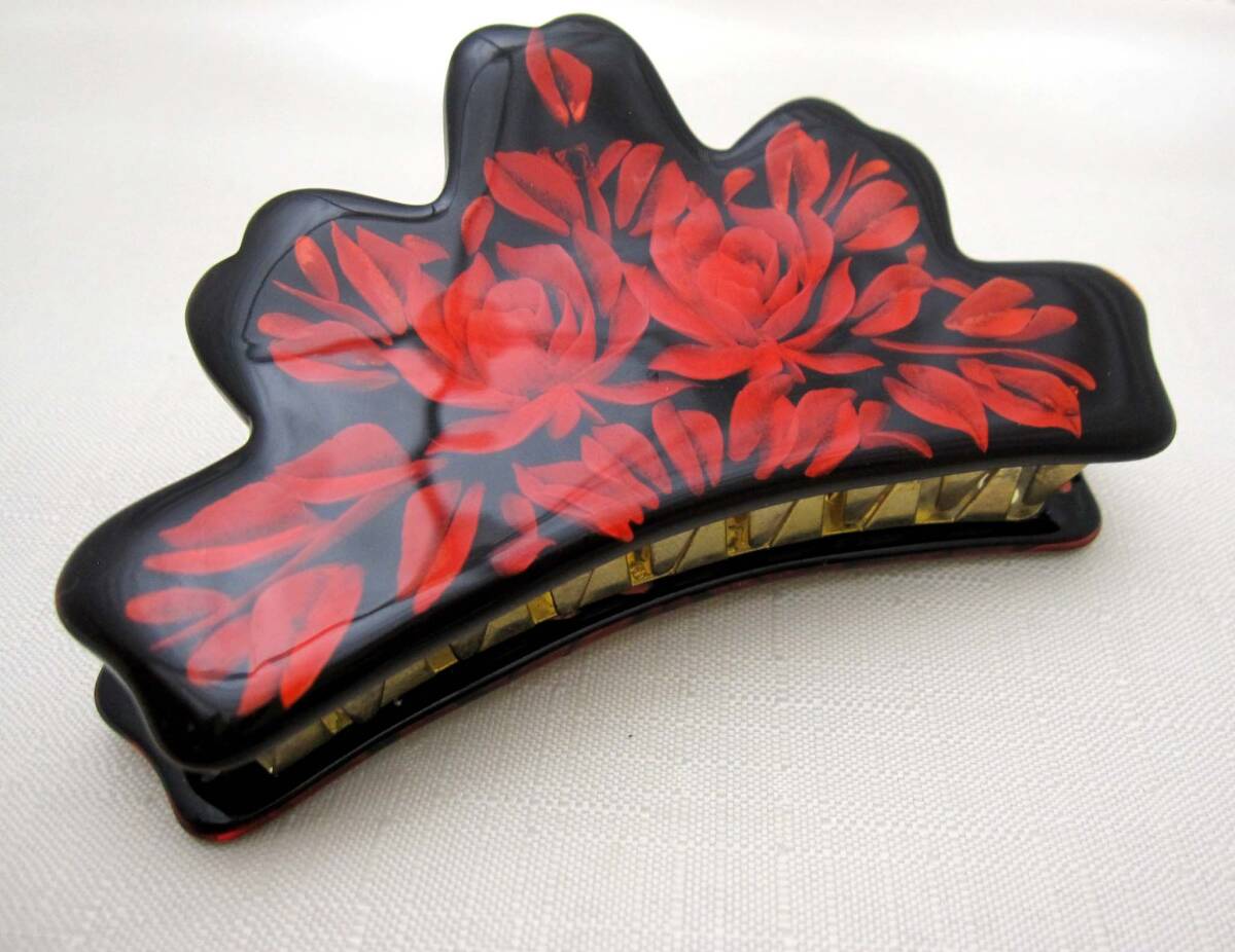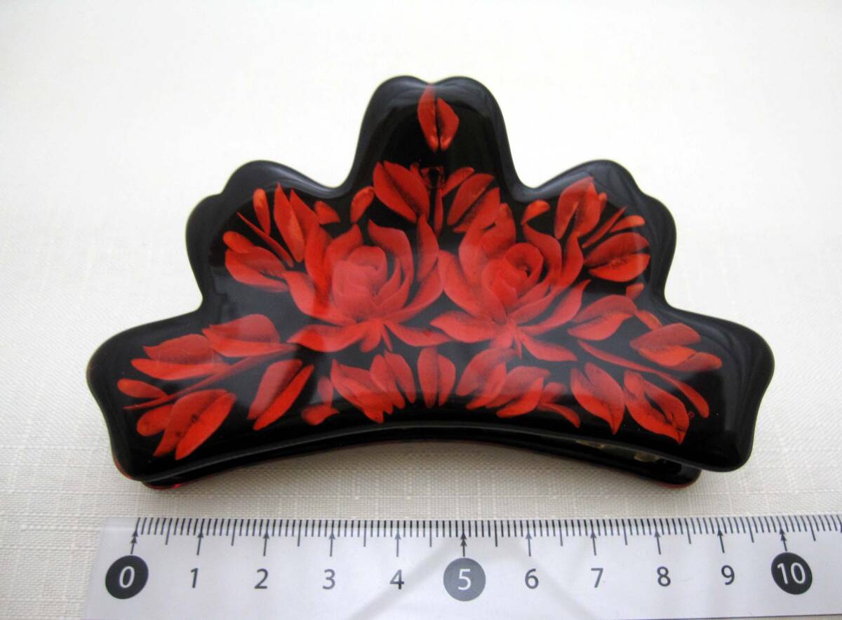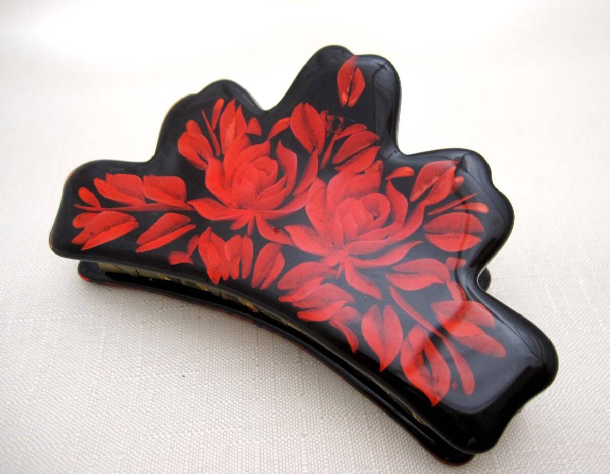 美品 バンスクリップ 赤 ヘアアクセサリー*髪飾り*和装*女子会*透かし*夜会巻*薔薇<241028-1>