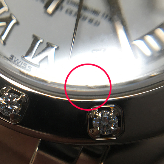 | コメント | ロレックス パールマスター 80319 ホワイト ローマが入荷致しました。ホワイトゴールドの無垢でベゼルには12Pの純正ダイヤモンドをセッティングしたゴージャスな逸品です。ケースサイズはレディースのデイトジャスト26mmよりも少し大きい29mmケースサイズとなっています。風防ガラスにルーペで拡大すると極微細なカケがありますが、肉眼では殆ど気にならない程度です。 ~出品担当の中村より~ 通常のシャンパンゴールドの文字盤やコンビモデルとは違い、ホワイトゴールドで統一されたシンプルで上品なモデルです。着ける場所を選ばず、パーティーシーンやビジネスシーン等に幅広い活躍をしてくれます。※装着写真は腕回りが13cmのモデルが着用しています。  | ||
