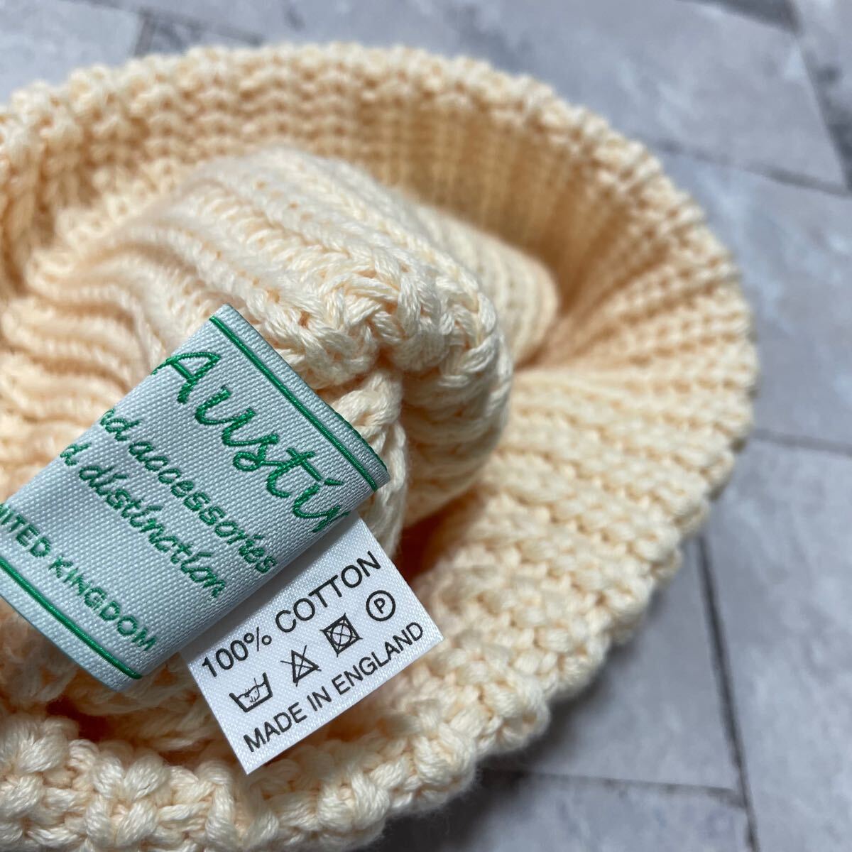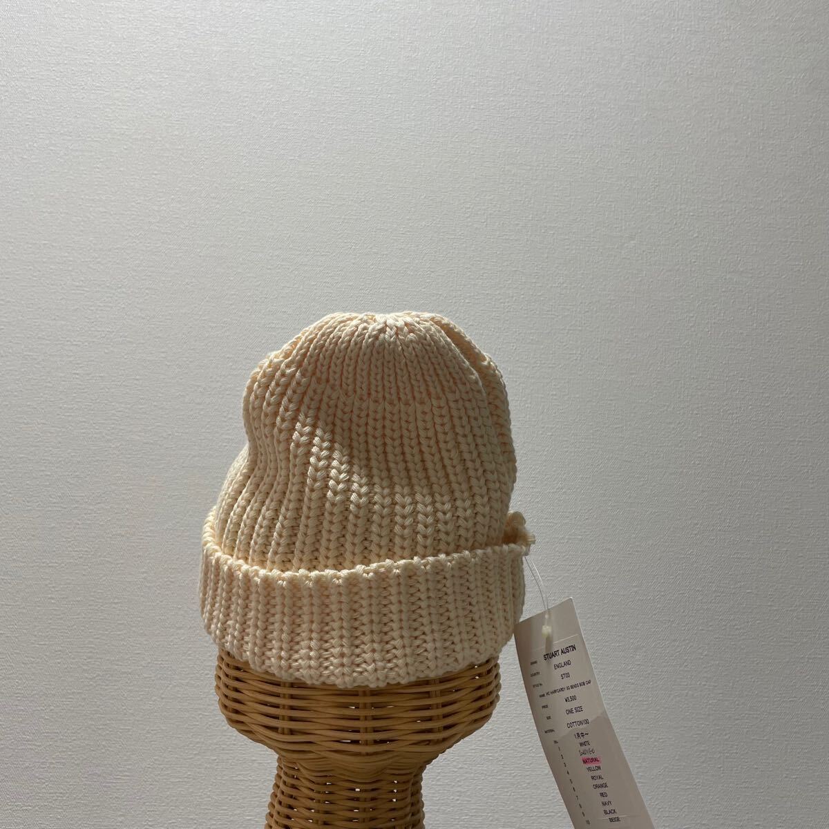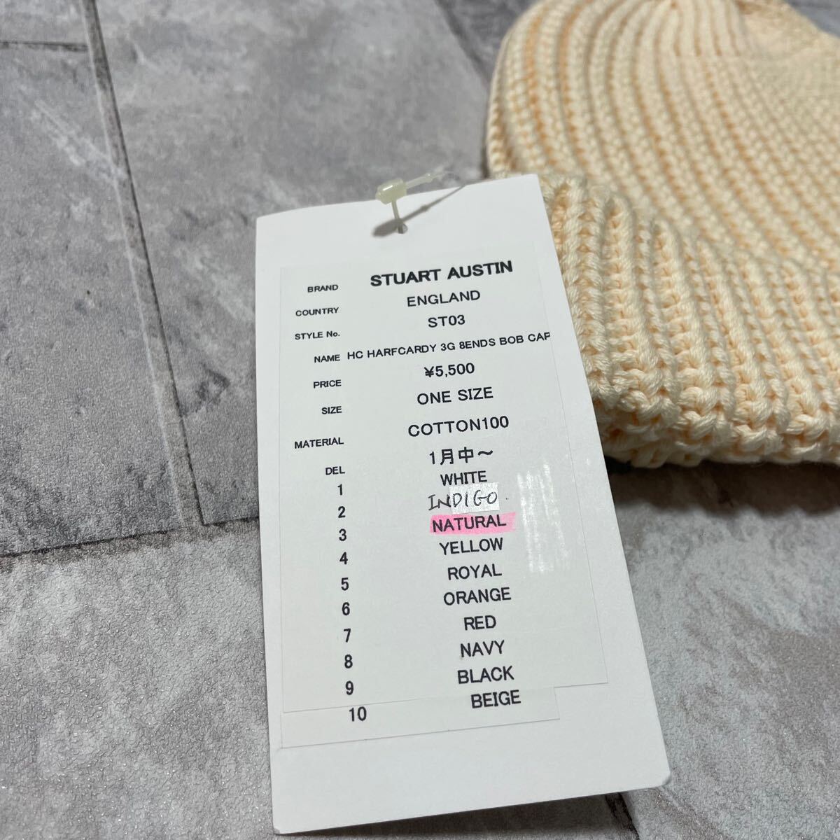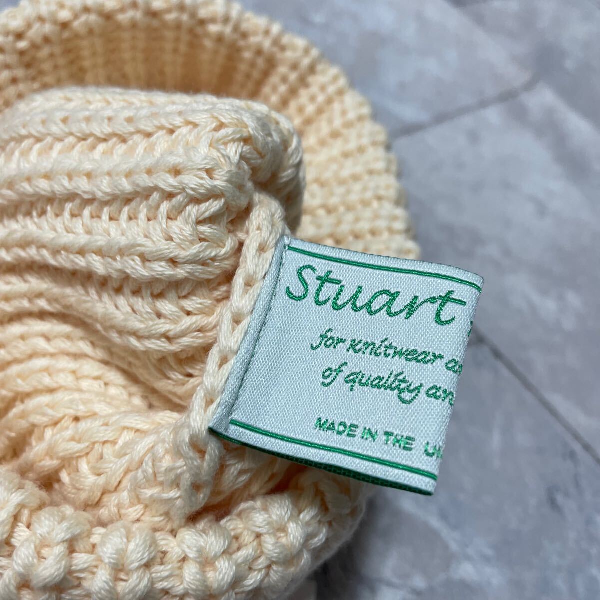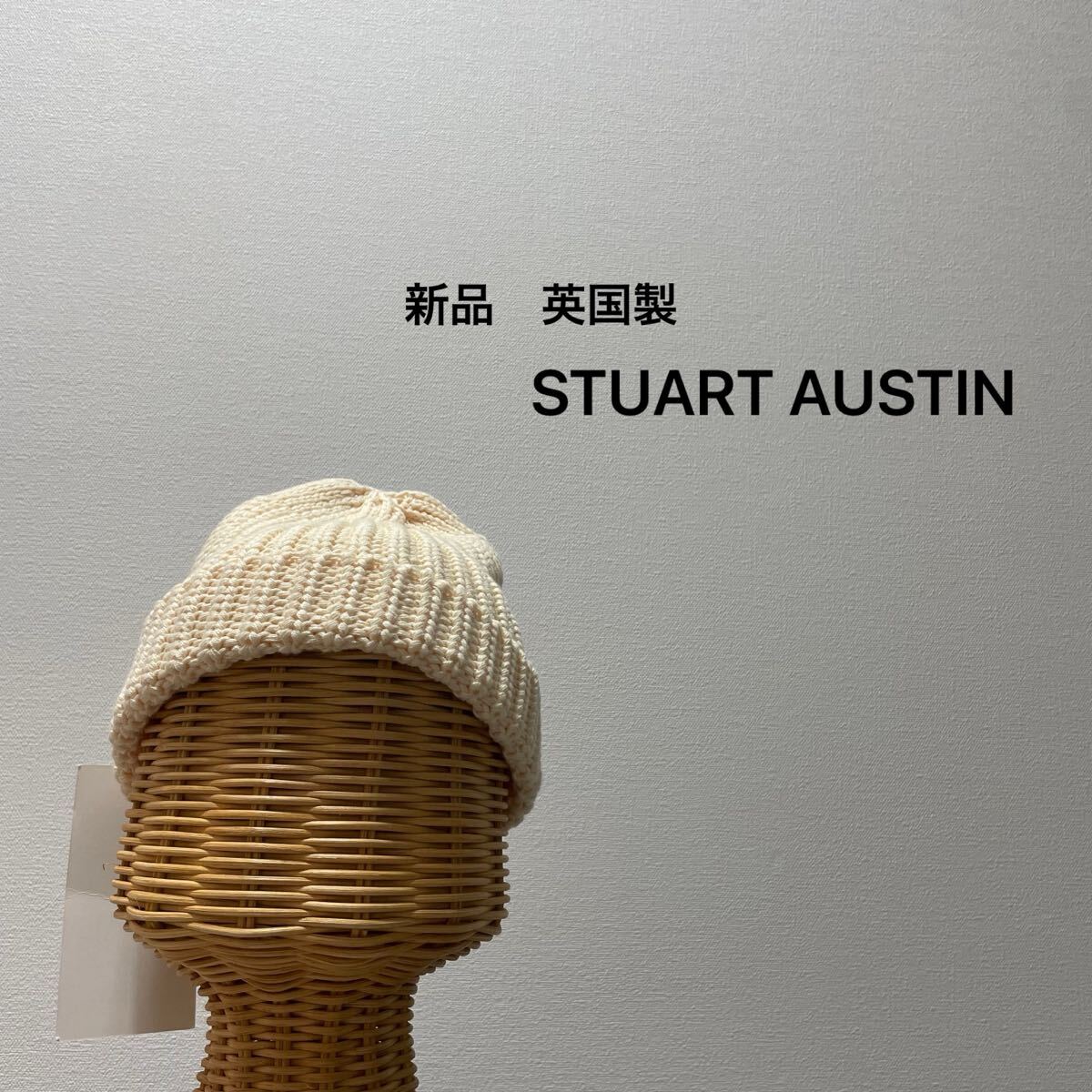 新品 英国製 STUART AUSTIN スチュアート オースティン ニット帽 帽子 キャップ コットン イギリス製 ローゲージ はだ色 玉SS2901