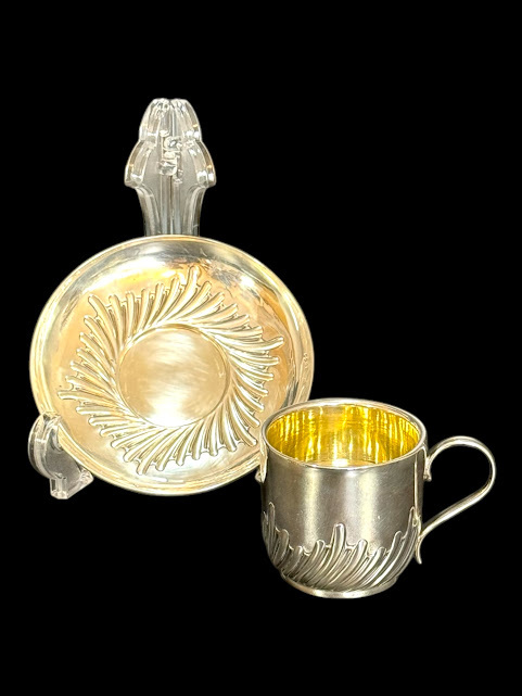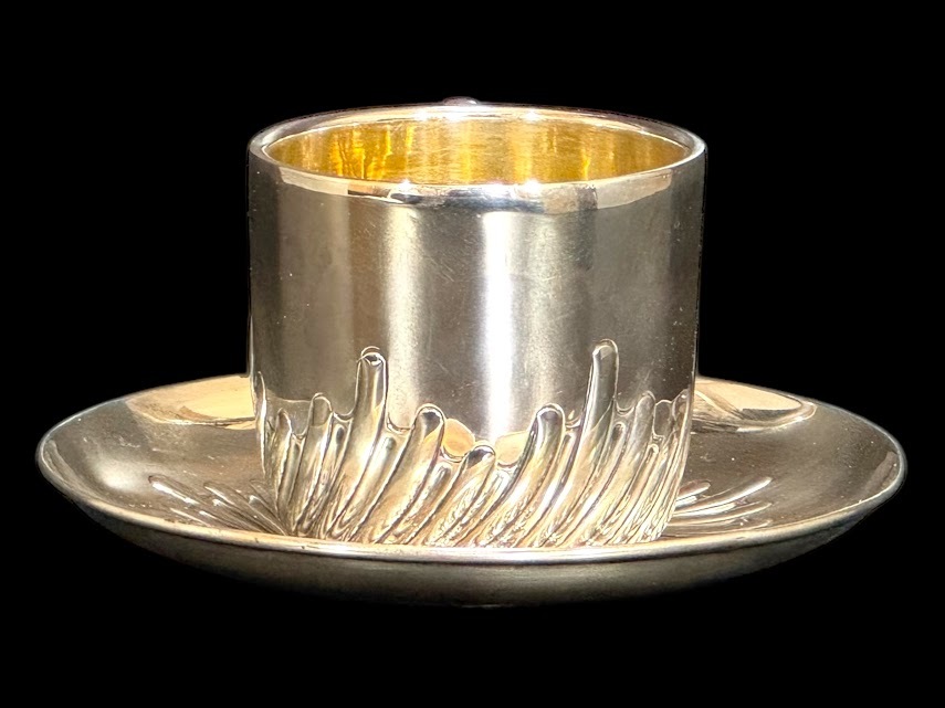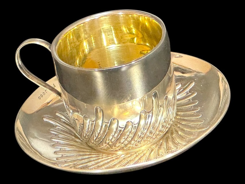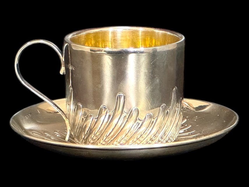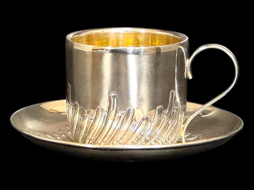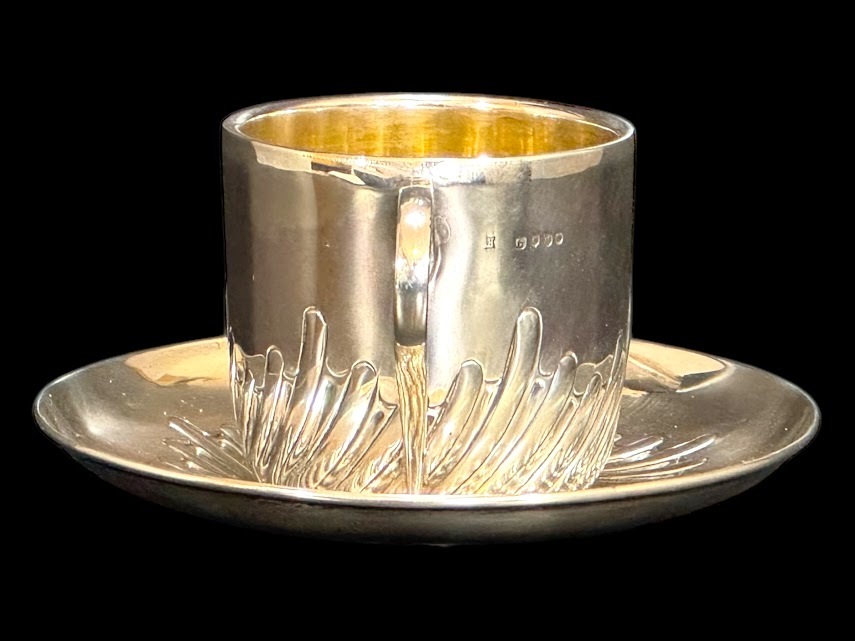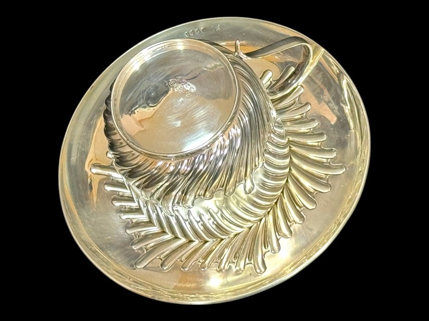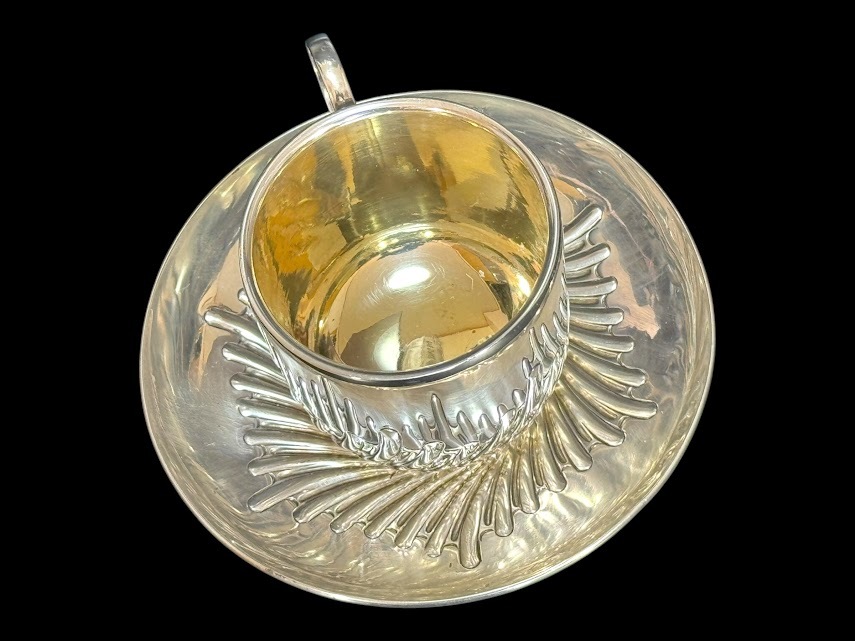 | 商品説明 | ◆商品詳細◆ 英国ビクトリア朝絶頂期の1887年、名門シルバースミスW.HUTTON & SONS社製の最高級純銀製カップ&ソーサーセットです。 【特筆すべき価値】 ・137年間セットで残存した稀少品 ・カップ内部は高級な金鍍金仕上げ ・見事な職人技が光る羽根状の渦巻模様 ・重厚な銀使いが証明する最上級の品質(総重量152g) 【細部仕様】 ▼刻印 ・ロンドン製造認定刻印(1887年) ・W.HUTTON & SONS刻印 ▼サイズ ・ソーサー:直径12cm ・カップ:高さ6cm×幅9cm(取手含む) ▼状態 保存状態は驚くほど良好です。137年の歴史を経た現存品としては極めて美しい状態を保っており、わずかな経年による使用感のみです。 【銀製品としての価値】 ・重量152gの贅沢な銀使い ・職人技が冴える繊細な模様彫り ・カップ内部の金鍍金は当時の最高級仕様 英国ビクトリア朝を代表する一流メーカーW.HUTTON & SONSによる逸品です。確かな製造年と希少性を備えた本物アンティークとして、コレクションとして永く愛でていただける逸品です。 |