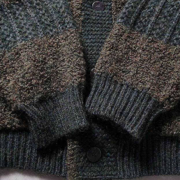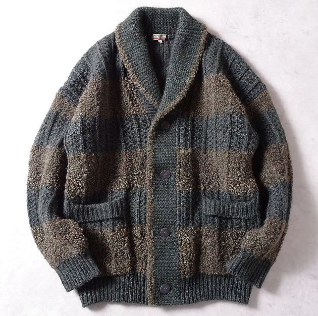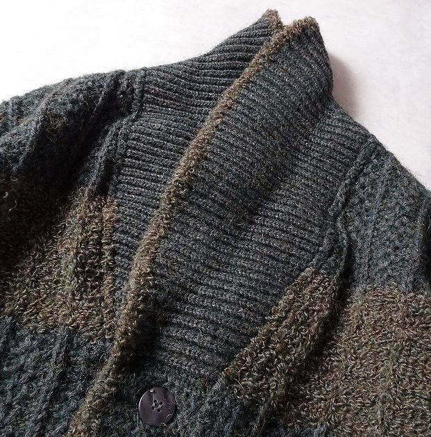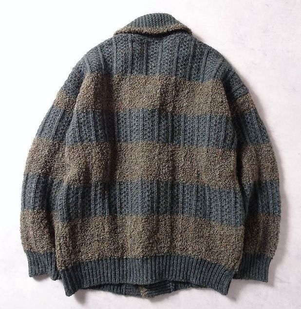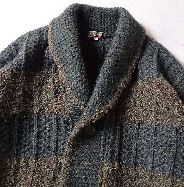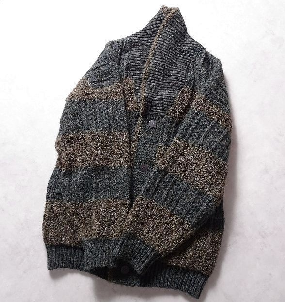 KING DONNE per uomo 太ボーダー ショールカラー ニット ジャケット カーディガン セーター 切替 編み柄 メンズ 大きいサイズ (LL) r-442