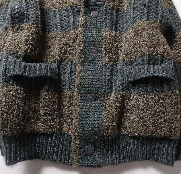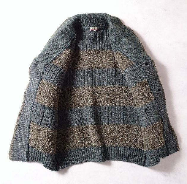 KING DONNE per uomo 太ボーダー ショールカラー ニット ジャケット カーディガン セーター メンズ 大きいサイズ (LL) グリーン系 ●r-442
