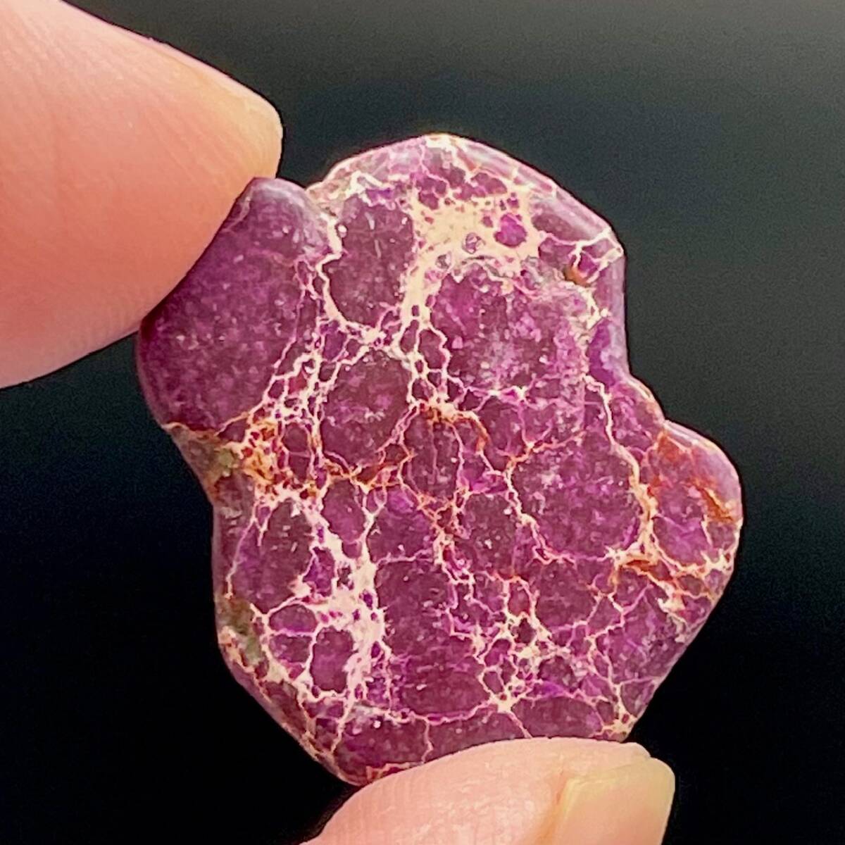 18.70カラットあるアリゾナ産 パープル キャリコレイクターコイズ スラブです。サイドにドリル貫通穴ありです。