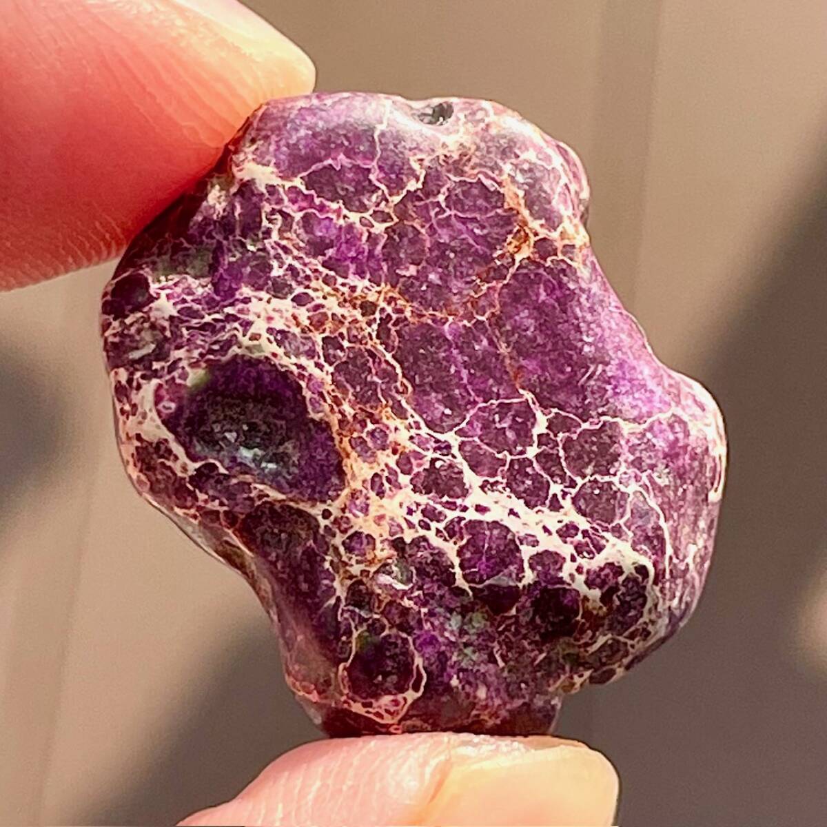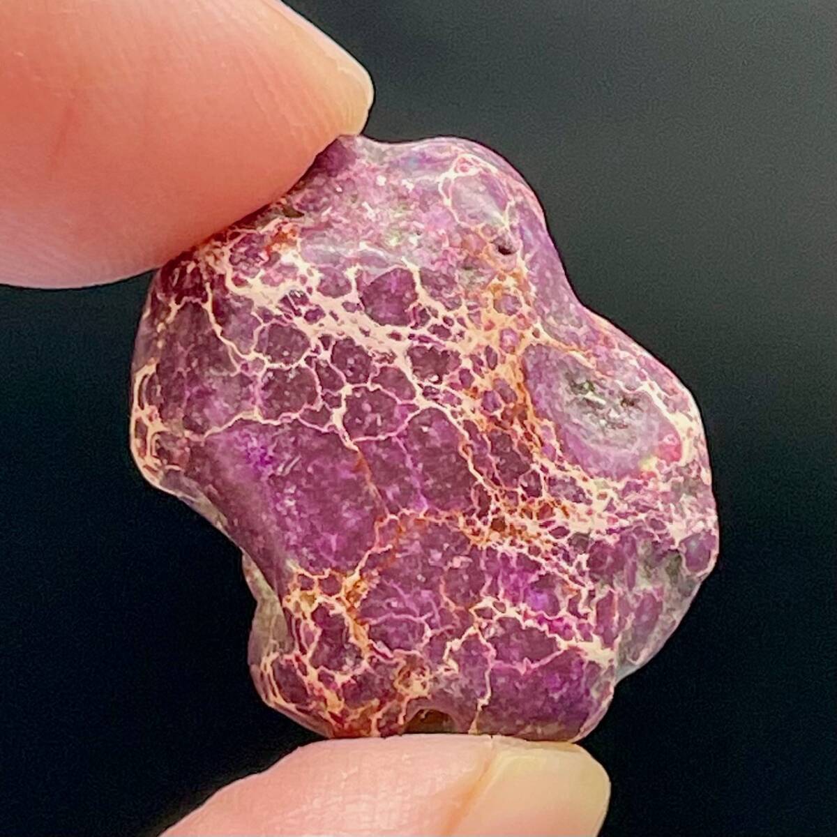 18.70カラットあるアリゾナ産 パープル キャリコレイクターコイズ スラブです。サイドにドリル貫通穴ありです。
