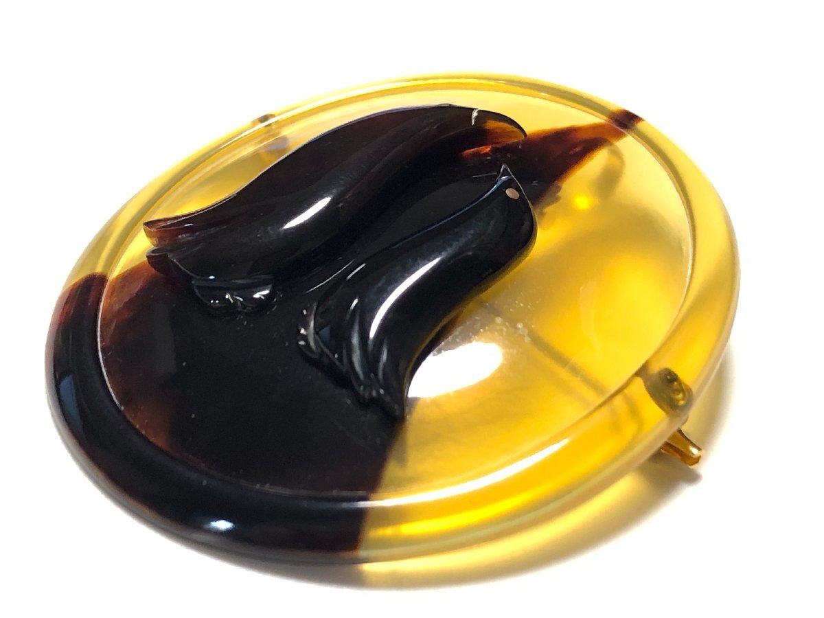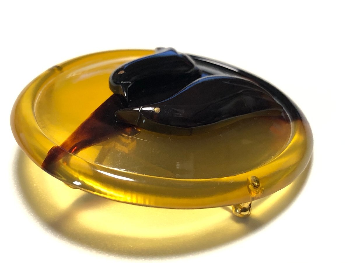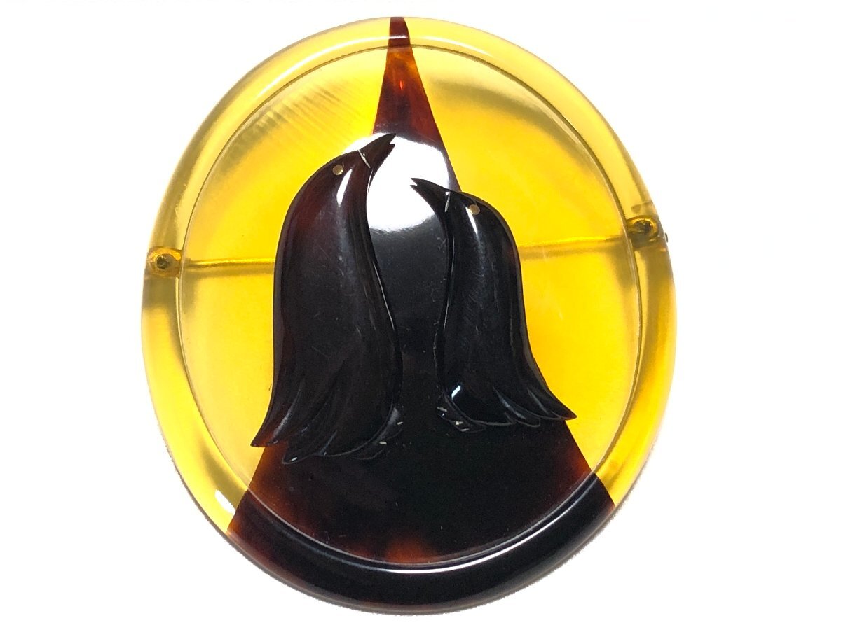アンティークの白甲・黒甲の本鼈甲を使用し、立体細工でペンギン細工を施した、デザインペンダントトップ兼ブローチです。鼈甲部分に欠けや虫食いは無く、美品です。
