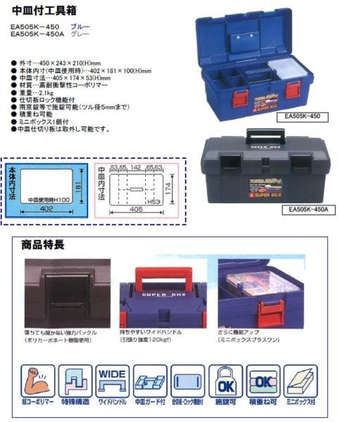 | ESCO 450x243x210mm 工具箱 (中皿付/グレー) EA505K-450A |