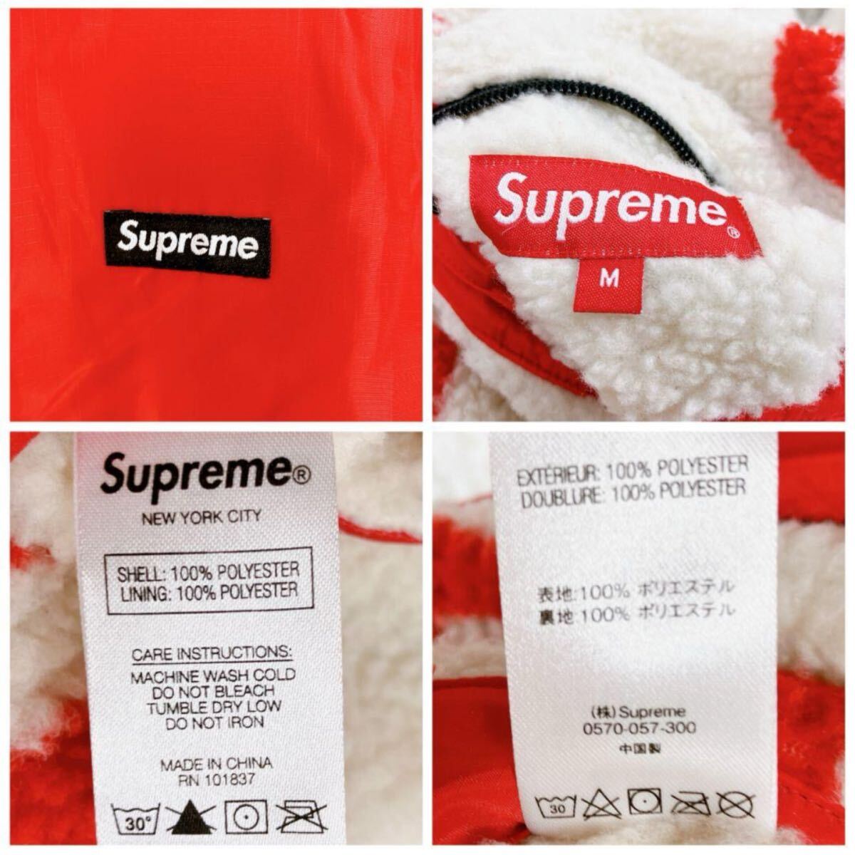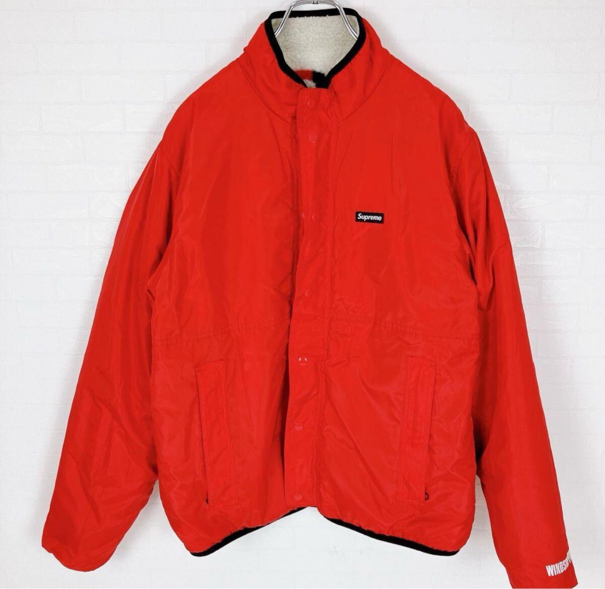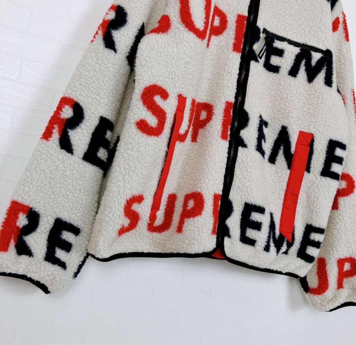 SUPREMEのロゴをたくさんあしらったデザインにボア素材の温かみのあるつくりで、リバーシブルになっていて裏面はボックスロゴのあるシンプルなデザインの真っ赤なジャケットとなっております。
