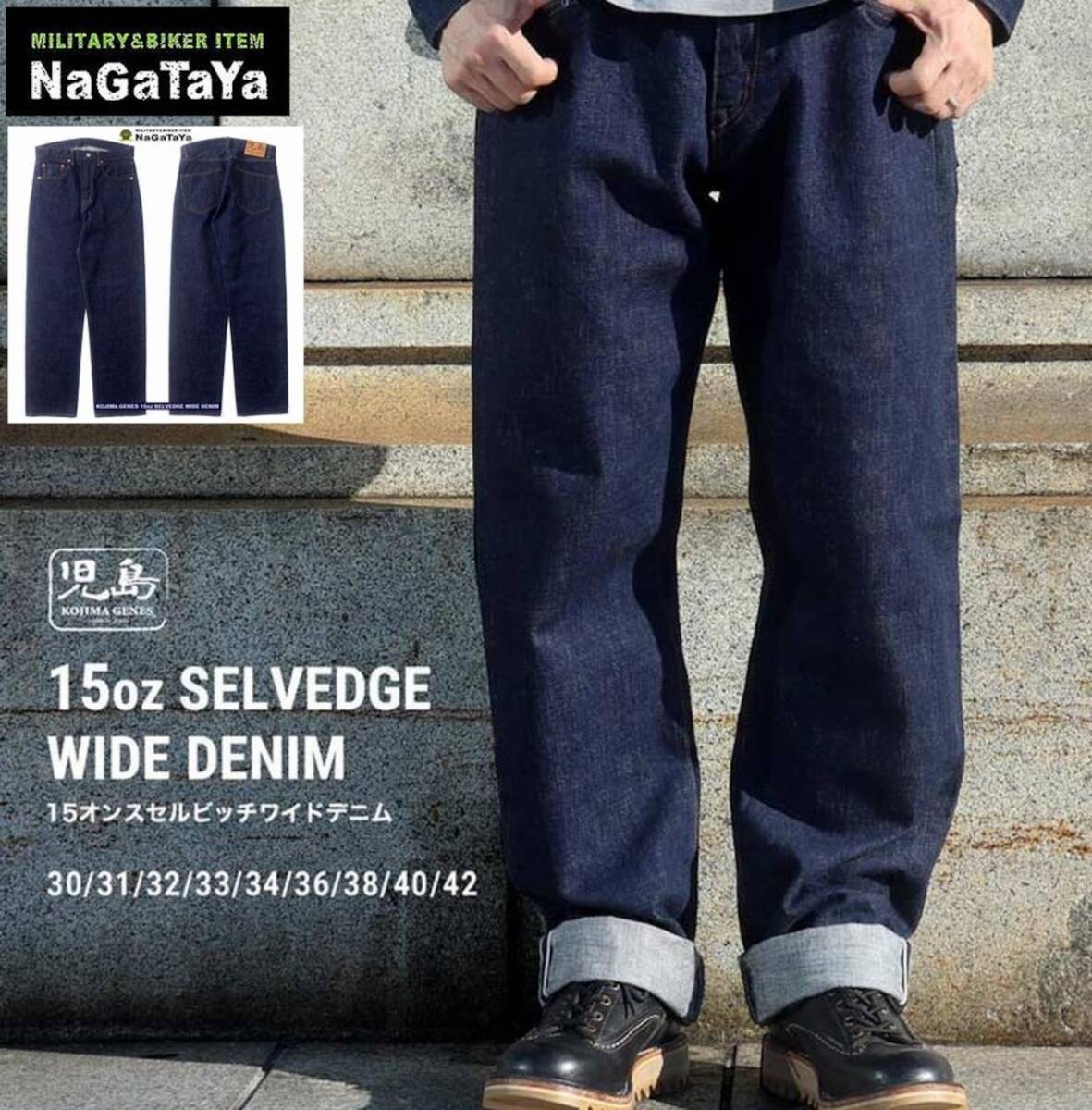 ★ 児島ジーンズ KOJIMA GENES 15oz セルビッチ ワイドデニム インディゴブルー RNB102W 日本製 MADE IN JAPAN ★