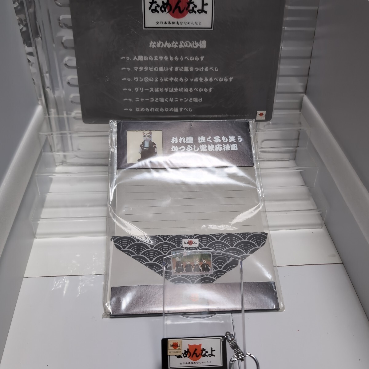 こちらは、80年代 。当時の未使用品。凄っ!全日本 黒猫連合なめんなよ。かつぶし学校応援団のグッツ3点を、セットにした物です。下敷きと、便箋!? レターセットと、アクリルキーホルダー。アクキー です。学校や職場で、使うも良し。! ポスター代わりに、貼ったりなんかも良し。! な 感じです。 是非 この機会に、当時を偲んでみては、如何でしょうか。!。送料は無料だニャァ〜〜。