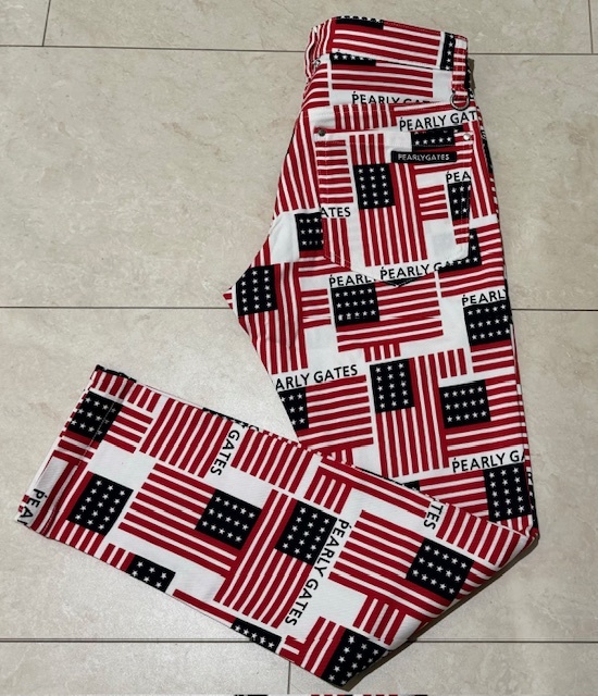 ・未使用 正規品・PEARLY GATES パーリーゲイツ USA星条旗×PG 秋冬 保温吸水速乾 パワフルストレッチパンツ 厚手 3号Sサイズ ウエスト76cm