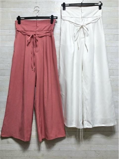 新品☆L♪ピンク×白系♪フェミニンワイドパンツ2本♪ハイウエスト〇B894