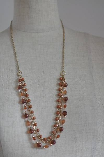 前の部分のみ3重になっているネックレスです。